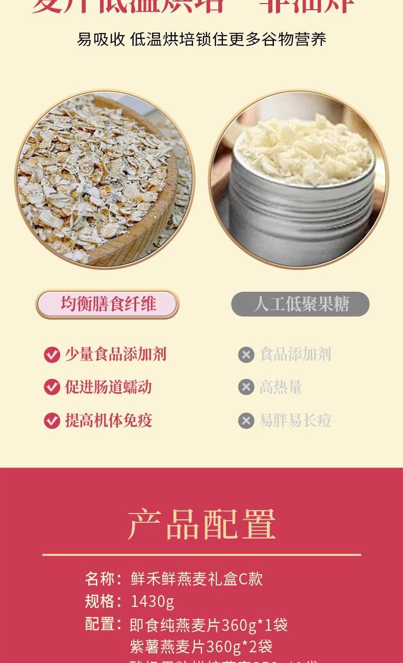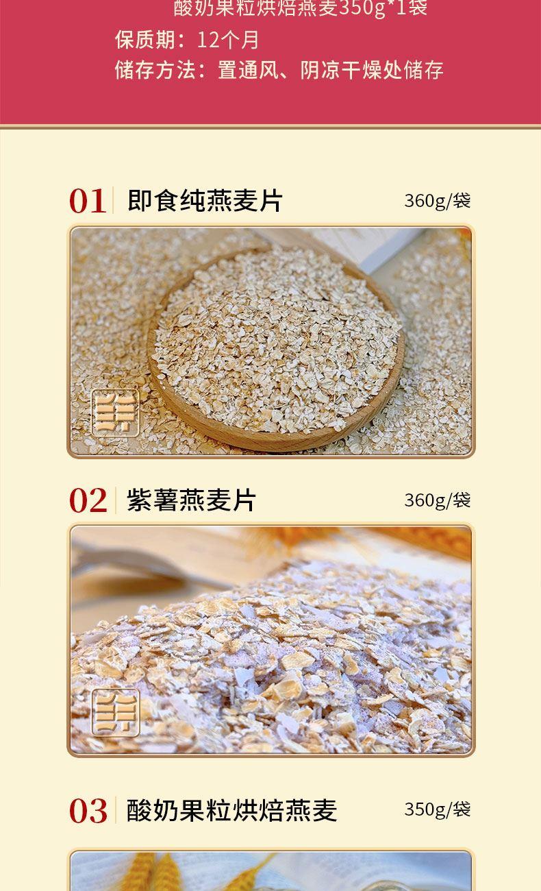 即食纯燕麦片360g*1袋 紫薯燕麦片360g*2袋 酸奶果粒烘焙燕麦350g*1袋 1430g
