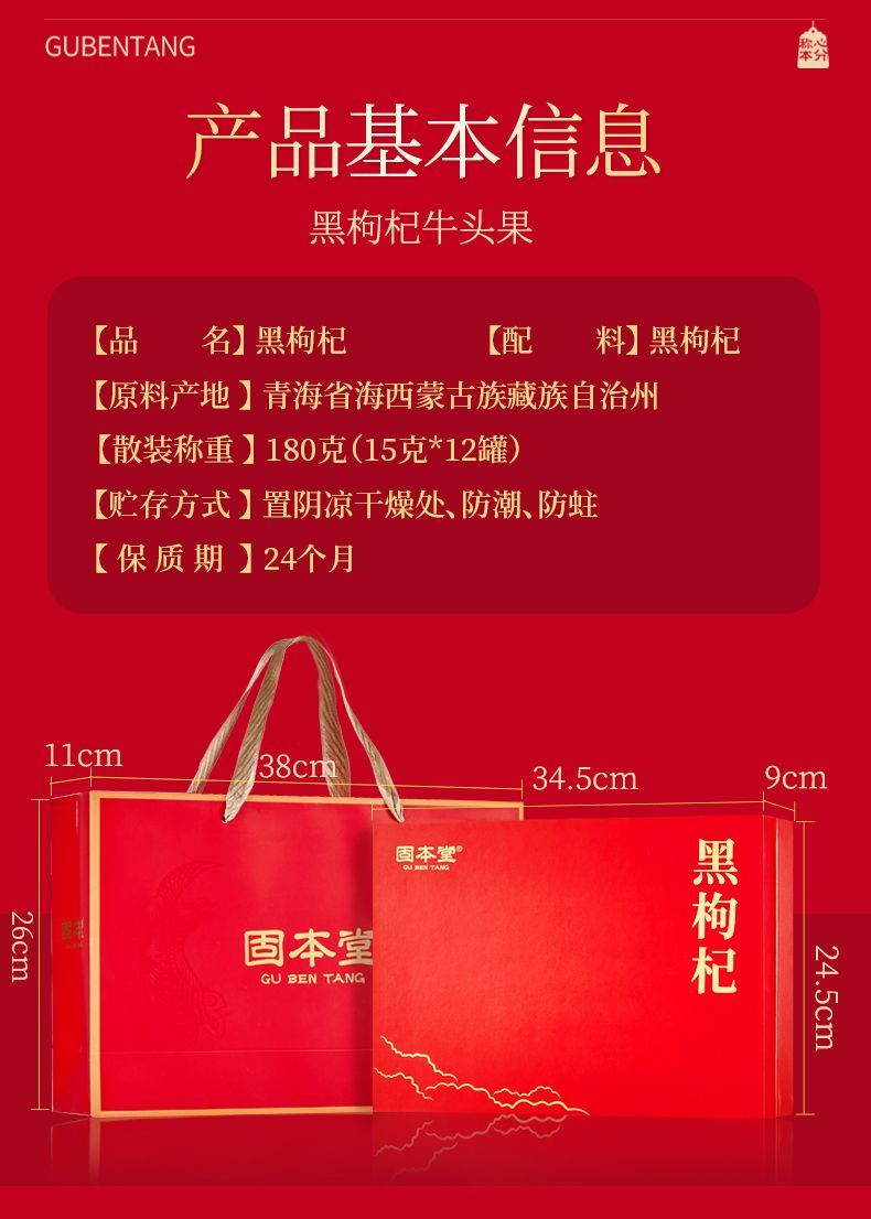 固本堂黑枸杞180克礼盒 6973700383169 180克(15克*12罐) 1(产品+打包箱) 10 中草药材 1010118000000000000 12个月