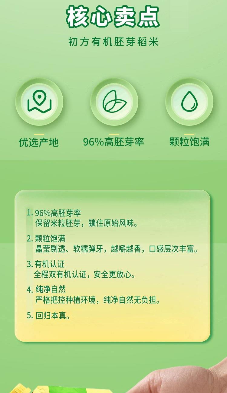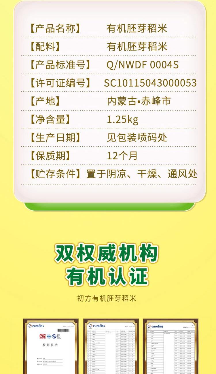 胚芽米双有机认证 SGS检测机构 704项无农残 胚芽米:米粒浅黄色(因保留胚芽和部分米糠),颗粒不如精白米晶莹。口感更粗糙,有嚼劲,带轻微米糠香气。