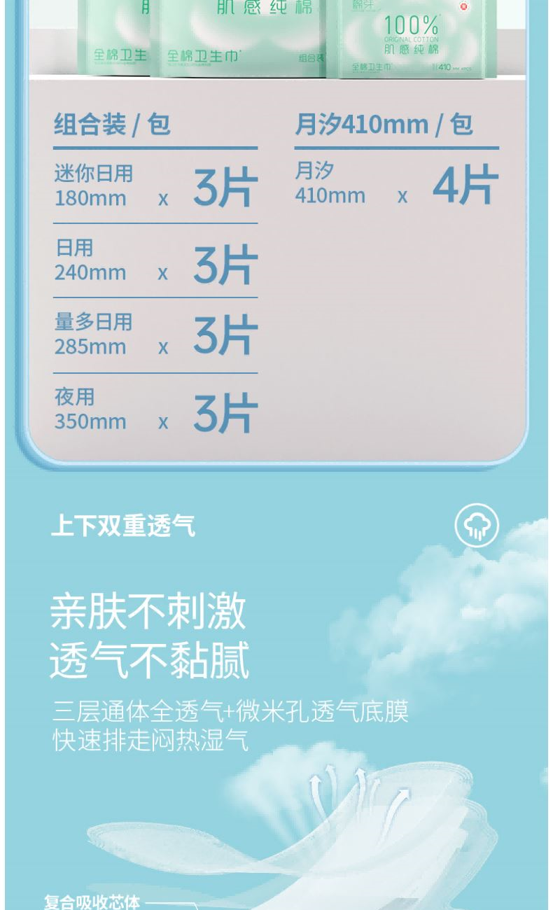 净 含 量:7片/包*1包 材质:全棉无纺布、高分子吸水树脂、透气底膜、热熔胶 核心利益点: 不闷 超薄芯体 不漏 瞬吸锁水 不刺激 纯棉