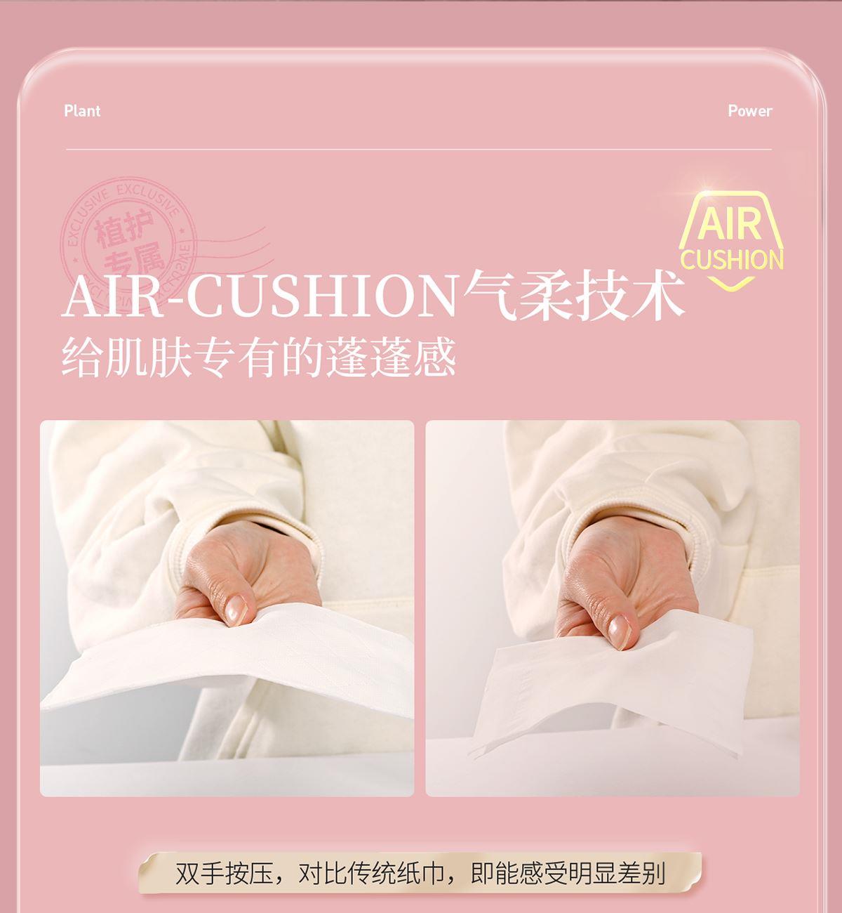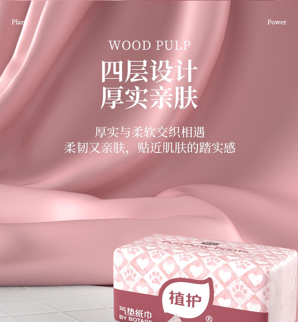 销售规格:140*175mm/4层 100抽20包/箱 香型:无香 主要原料:原生木浆 保质期:3年 产品推荐 1、精选原生木浆,柔韧性更好 2、优等品等级,高标准品质 3、纸质绵柔细腻,擦拭不留屑,亲肤零刺激 4、湿水性好,强韧吸附水渍不易破 5、四层压合紧密,纤维排列细致,拉扯不易破 6、原生木浆,天然安心