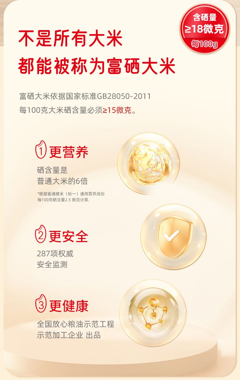 产品特色:1、源自世界硒都·湖北恩施,南方籼米; 2、鲜稻现碾,米形微长,粒粒分明,更适合煮米饭,松软可口; 3、富有机硒认证,有机硒,每100g平均硒含量≥15ug;