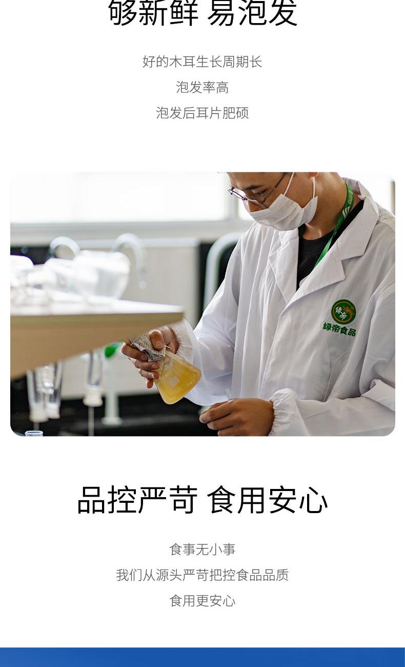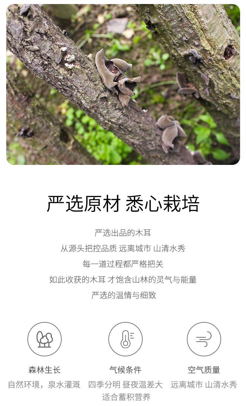 配料:黑木耳 原料产地:黑龙江省牡丹江市 净含量:100克 保质期:12个月 生产日期:见包装物打印处 食用方法:用清水浸软洗净后,可煮、炖、炒、烩等。 精挑细选优质单片黑木耳,其色泽乌黑发亮,耳瓣整体舒展,叶体厚实,涨发性好,其味道清淡微香。