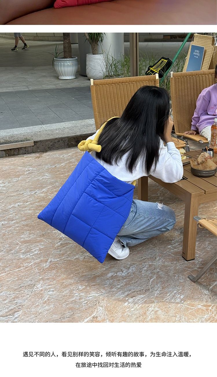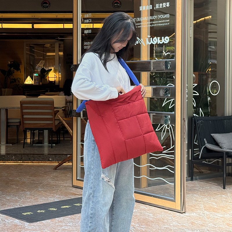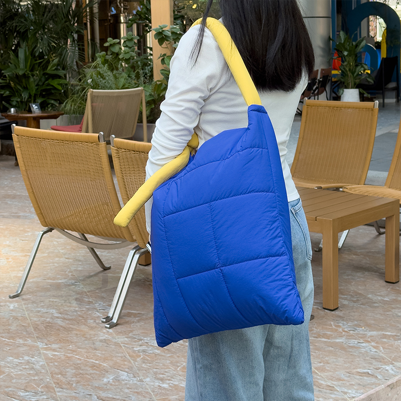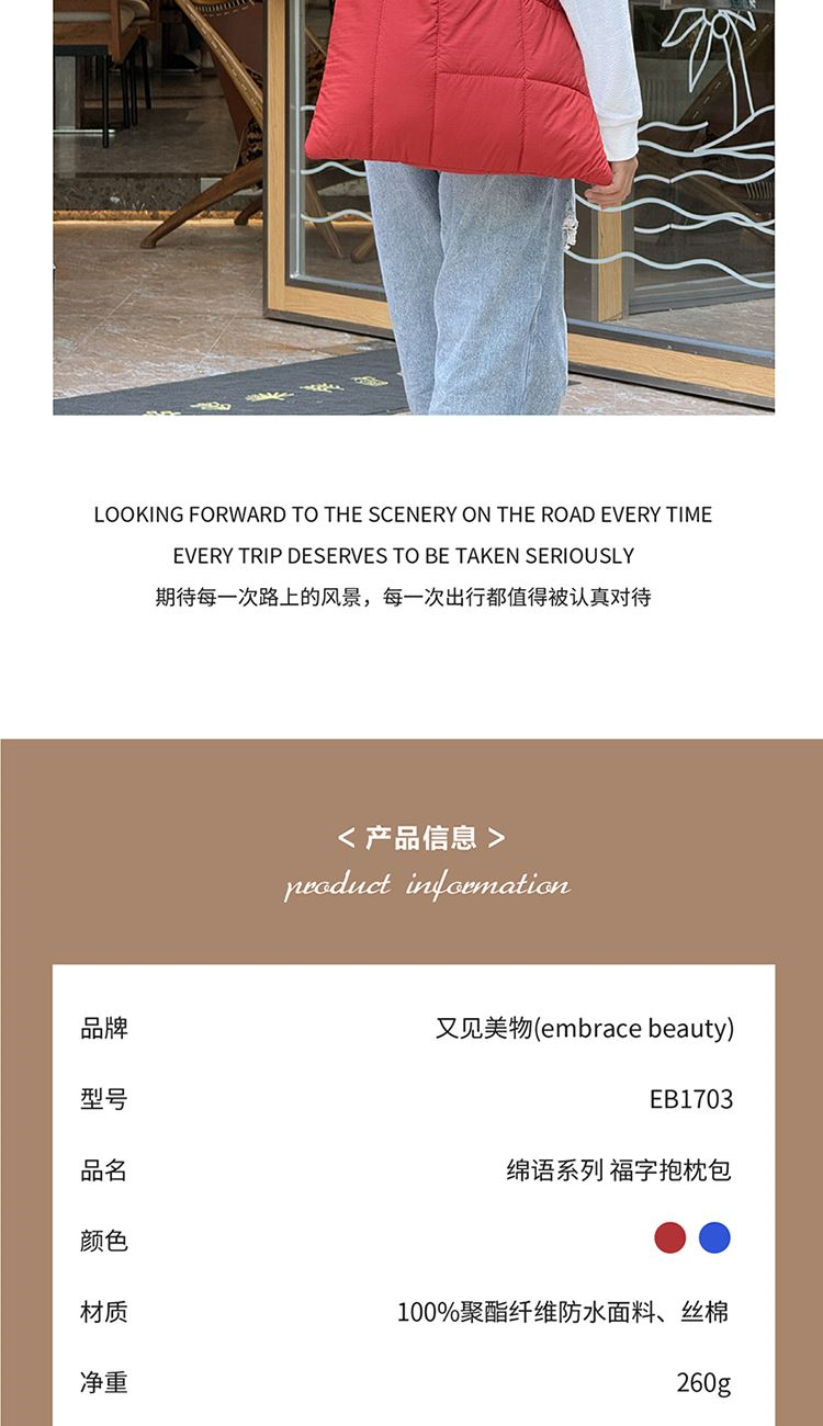 “福”字、作为中国传统文化中具代表性的吉祥符号之一、承载着人们对美好生活的向往与期盼。福bao以“福”字为核心图案、通过几何抽象的方式重新诠释、既保留了传统福字的精髓、又赋予了其现代时尚的美感。 一包两用,随意切换。它不只是个包,还是个抱枕!肩带一端固定、另一端可轻松拆卸隐藏。系上肩带,就是一款随性好搭的单肩包,日常通勤、逛街都能背;把肩带拆卸并隐藏起来,再装入毯子或衣物,立刻变身软乎乎的抱枕~办公时能装文件小物,居家时可当靠枕放松,旅行时既方便收纳,还能临时充当休憩抱枕,一包解锁办公、居家、旅行等多场景需求。