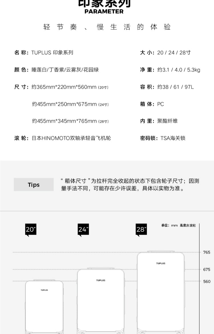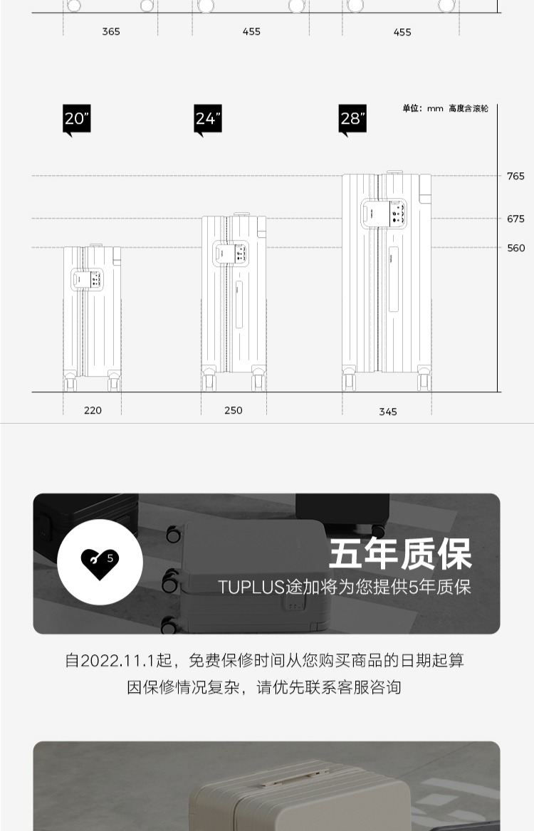 途加TUPLUS印象经典系列28英寸宽拉杆行李箱-云雾灰
