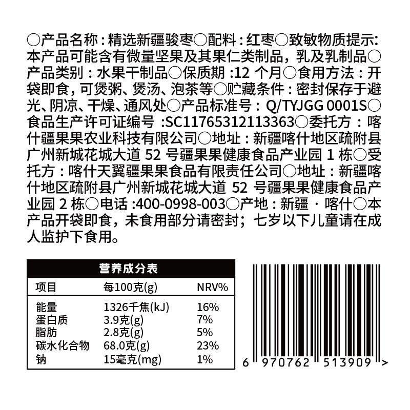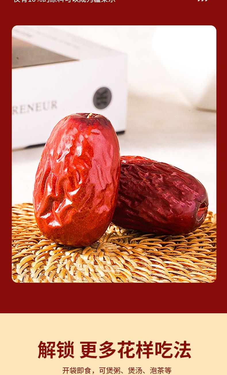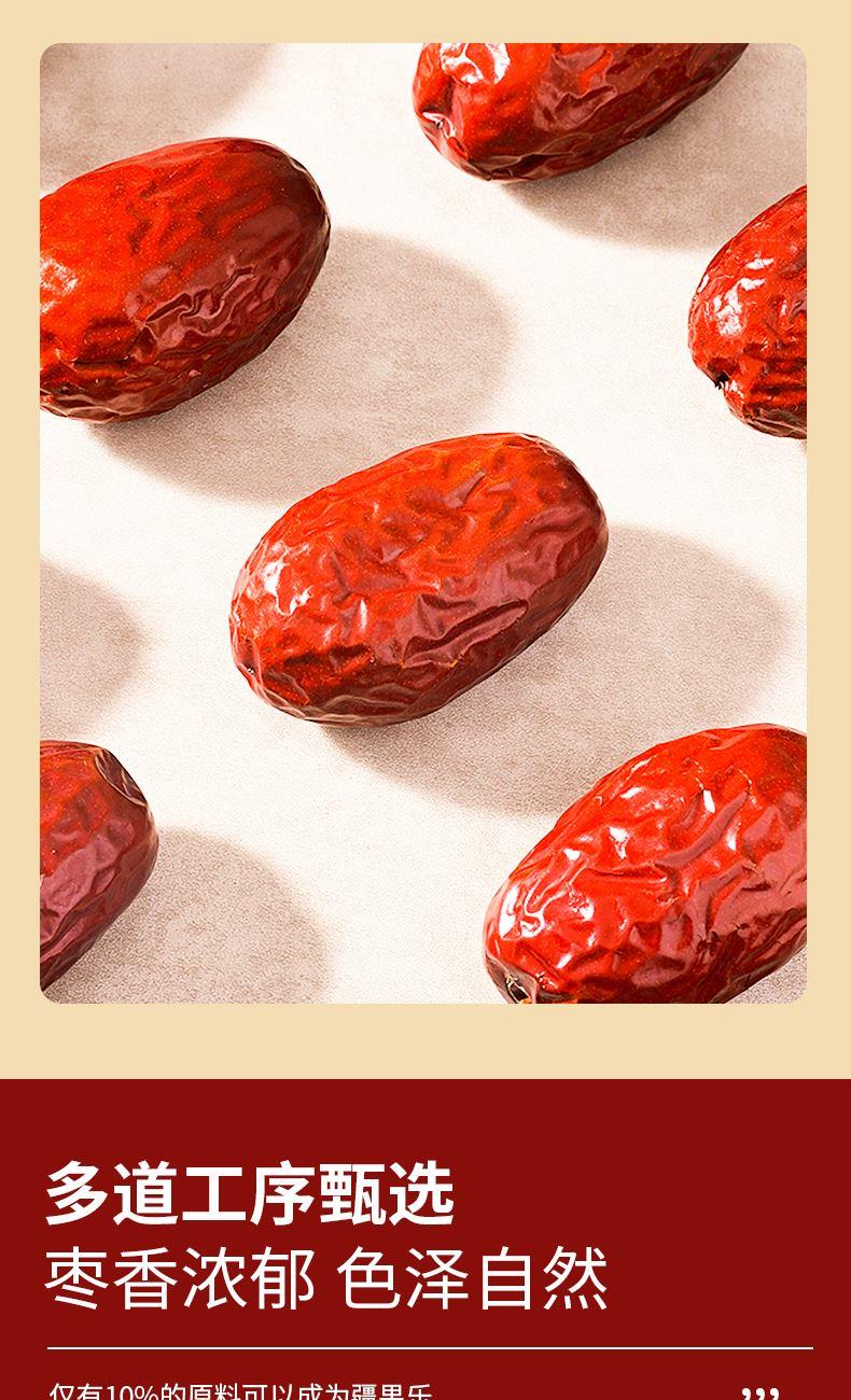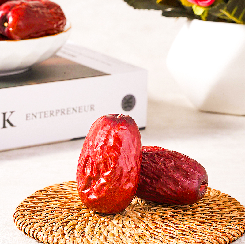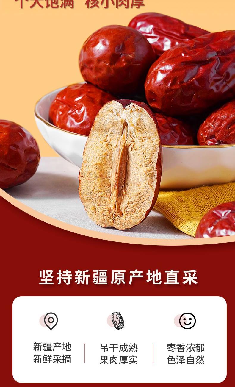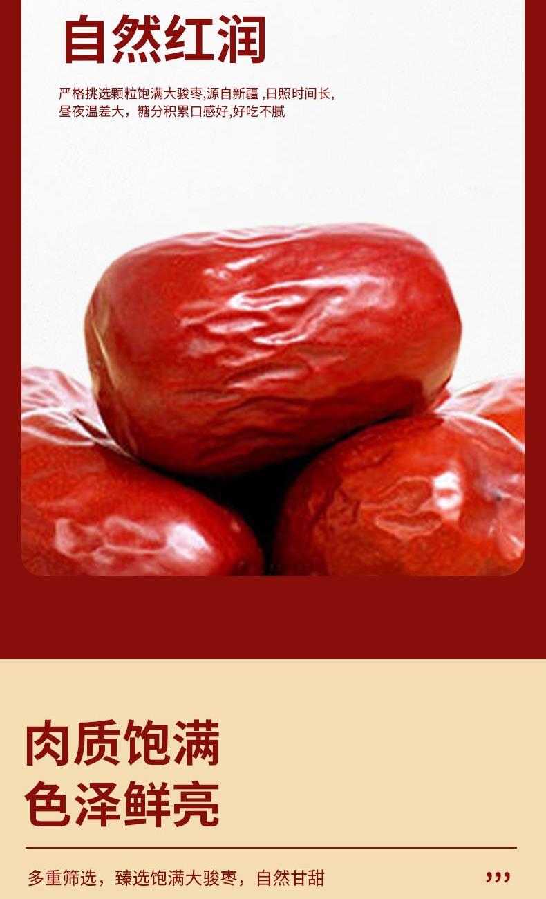新疆骏枣果肉绵密紧实,入口鲜嫩弹牙,咀嚼时枣香与清甜层层释放,仿佛在舌尖上演一场甜蜜交响乐。得益于新疆日均15小时的超长日照和20℃以上的昼夜温差,骏枣糖分积累高达21%-23%,甜度远超普通红枣,却丝毫不腻,让人一颗接一颗停不下来。自然成熟,树上吊干不仅保留了果肉的水分与弹性,更让甜度浓缩升华,口感如新鲜枣般细腻,却多了一份醇厚的焦糖香