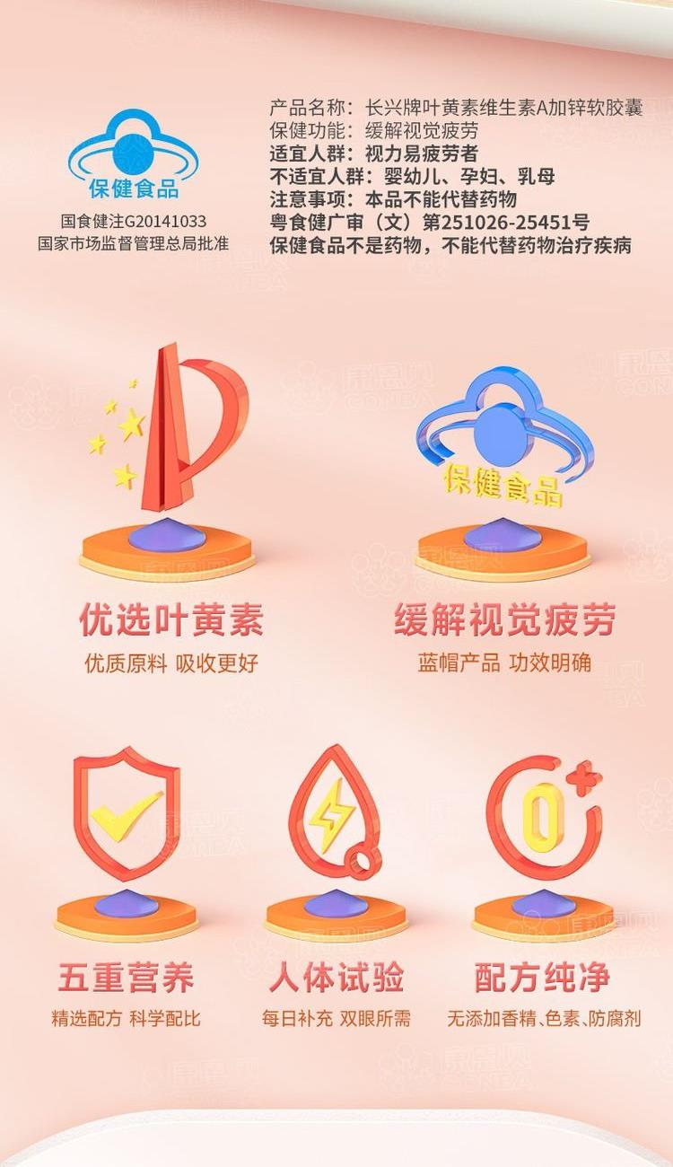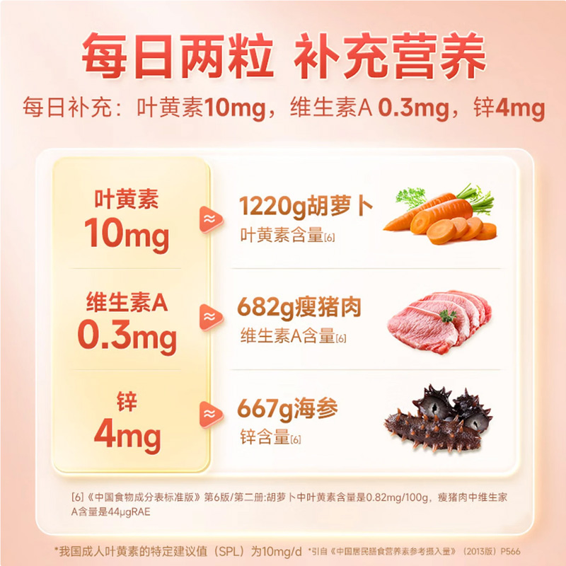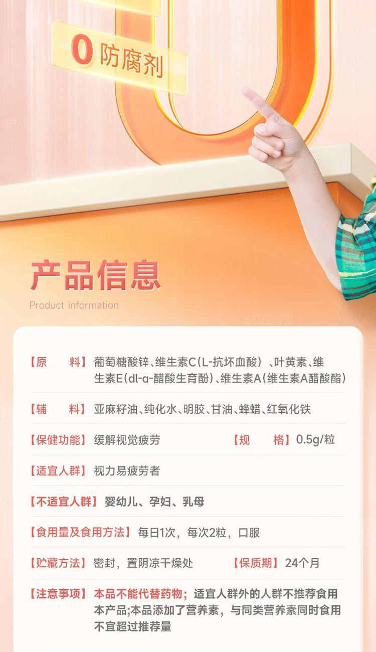 0.5g/粒*30粒 精选优质游离型叶黄素 小分子好吸收 一粒富含5种营养,高能补充 无色素、香精、防腐剂添加
