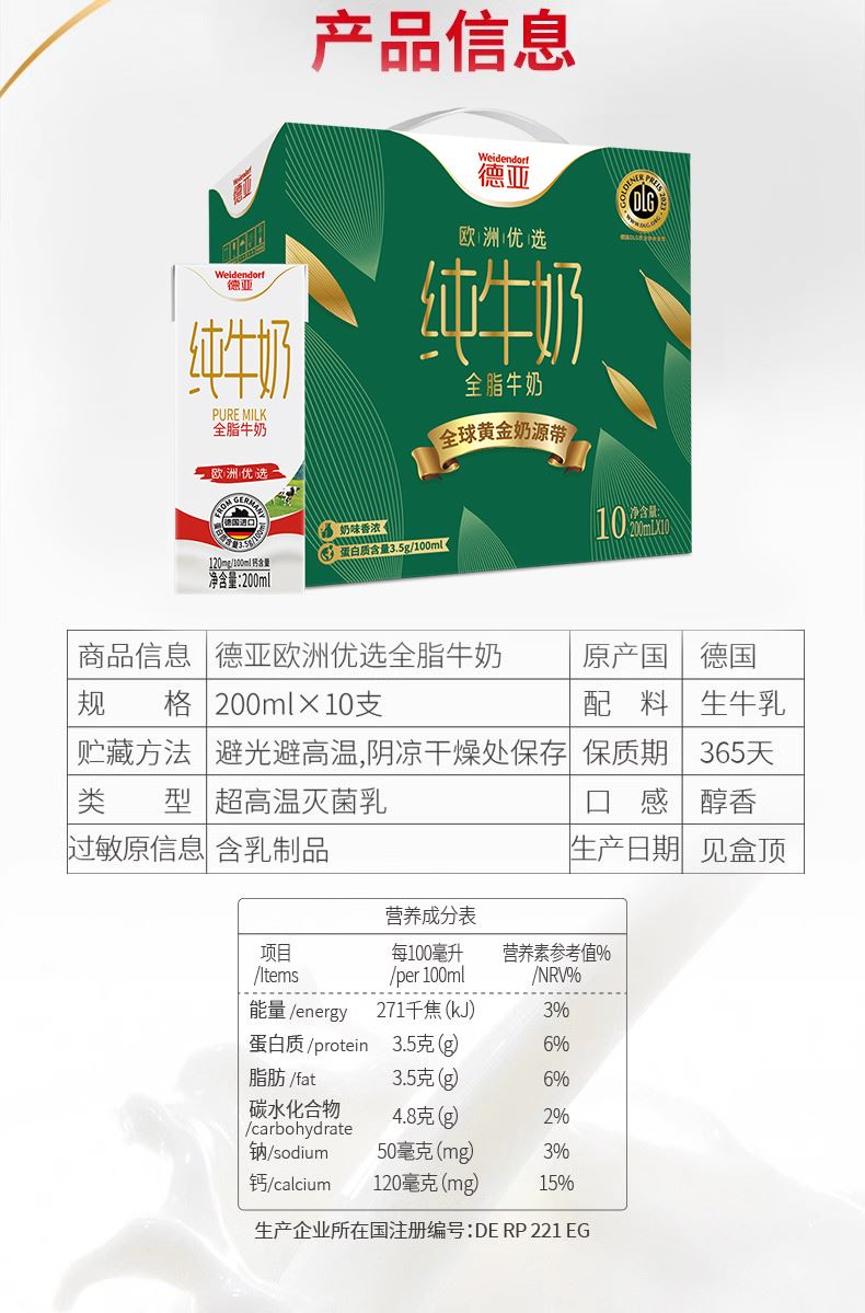 保质期365天 德国进口纯牛奶