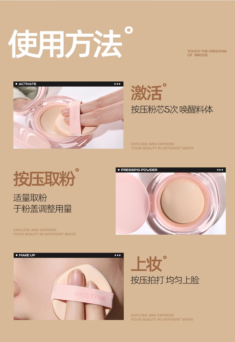 1.奶润 两万目网纱科技处理工艺,超柔软触感 料体与精华同时被细细过滤后筛出,上妆好像上面霜 2.细腻 40MM直径内大约有25000个微小孔径 出料更细密,铺开底妆好像会呼吸 3.遮瑕 2.29mm/s出料速度,出料更细更多 多倍遮瑕,柔焦平整肌肤,瑕疵看不见 创新加入“抛光珠”粉体* 薄薄一层,给肌肤做一次抛光SPA p 在粉底液使用前中后,不断自动化研磨,冲散集聚粉体,使得粉质 细腻丝滑易延展; p 同时粉体表面进行“抛光工艺处理”,粉体自带通透感,上脸给肌 肤做一次抛光SPA,上妆无遮盖粉感,只见通透光感