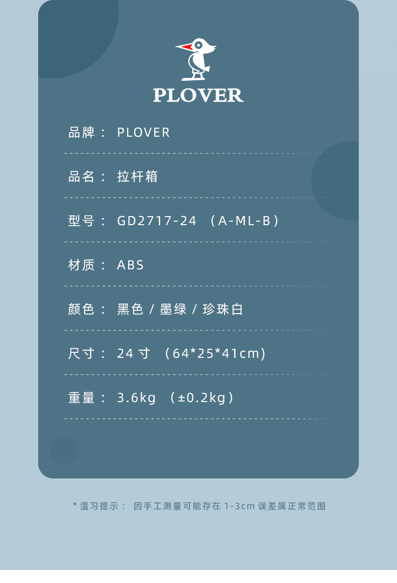 PLOVER香港啄木鸟24英寸拉链款拉杆箱GD2717-24