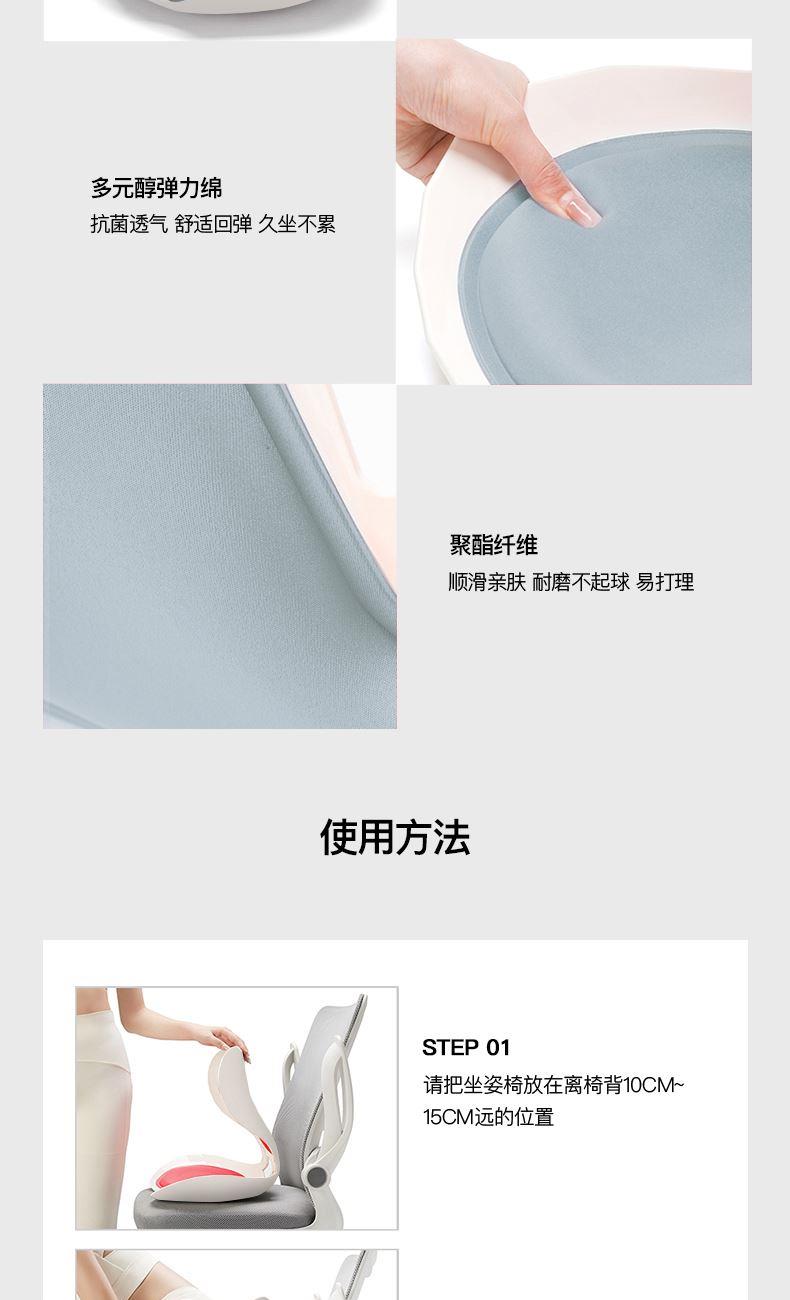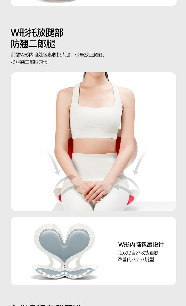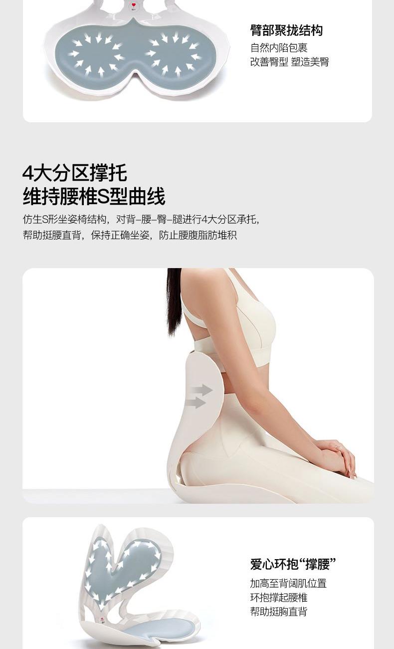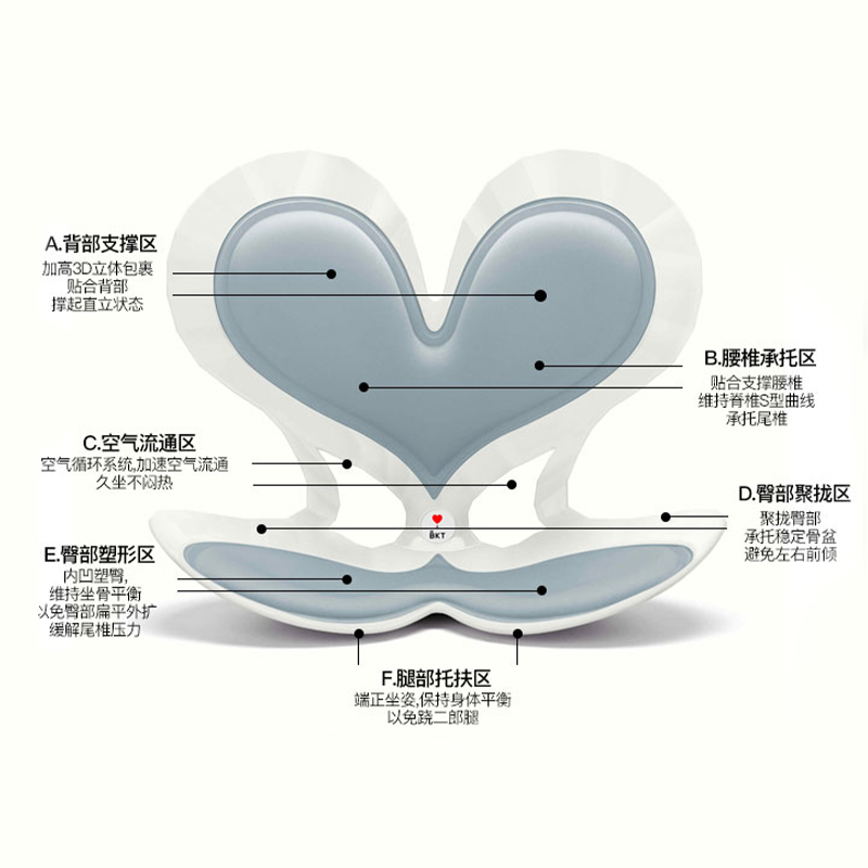 产品型号:爱心版 海雾蓝 产品颜色:海雾蓝 产品尺寸:456*326*399mm 产品重量:约1230g 产品材质:PP合成树脂/布(聚醋纤维) 适合体重:体重220斤以下 适宜人群:坐姿不正确人群,上班族、学生、教师等久坐人群,有跷二郎腿习惯人群,对臀部塑形聚拢有需求的爱美女性,希望拥有良好体态与挺拔气质的人群。