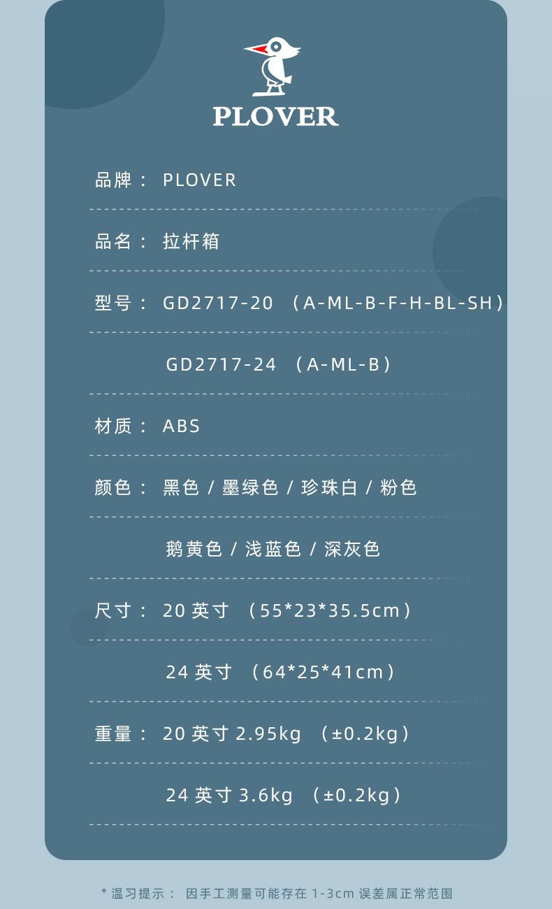 PLOVER香港啄木鸟20英寸拉链款拉杆箱GD2717-20