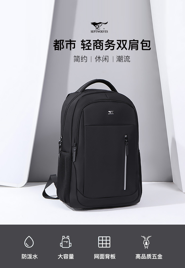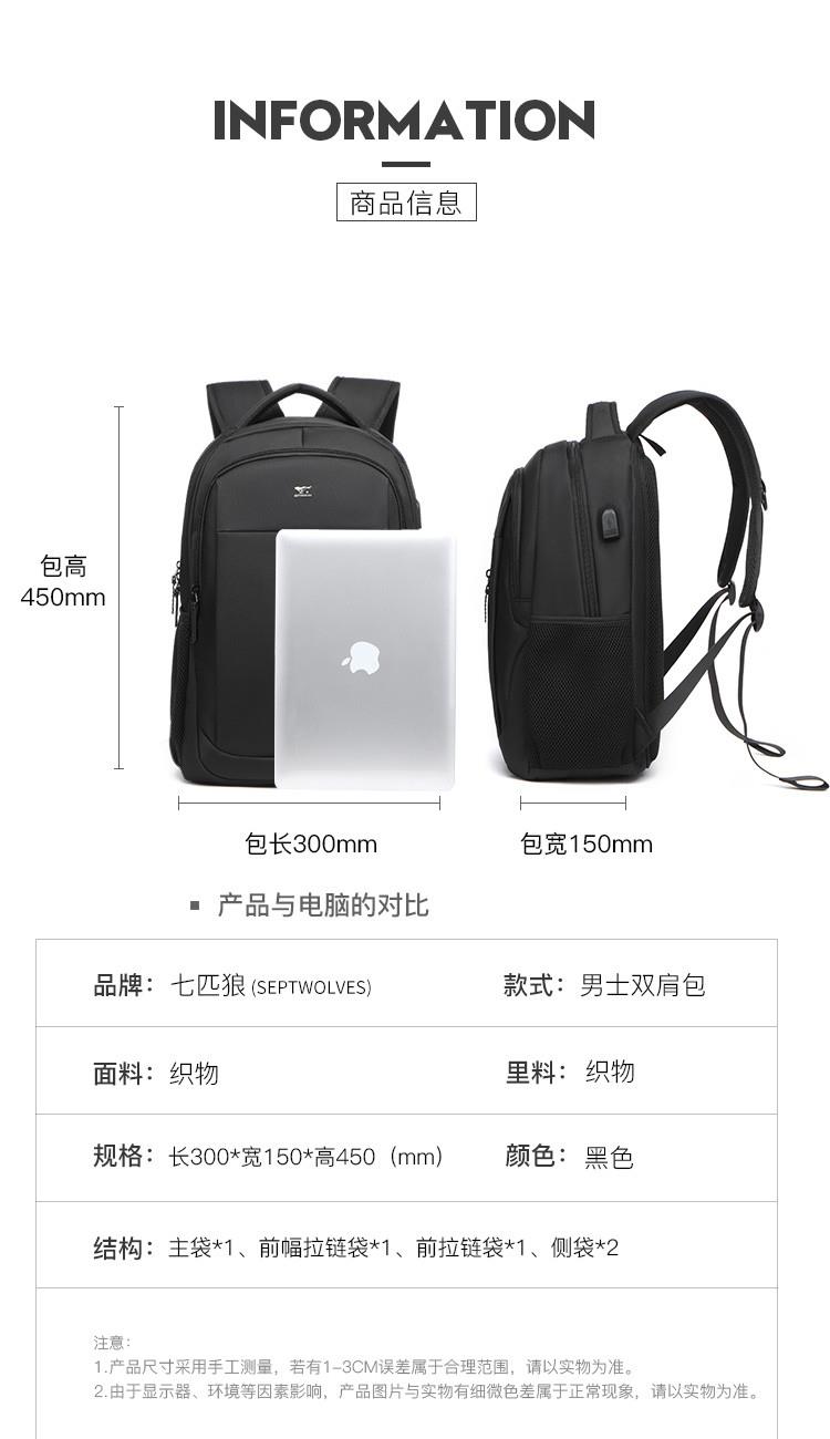 七匹狼大容量多隔层合理收纳双肩背包WZX90423-1