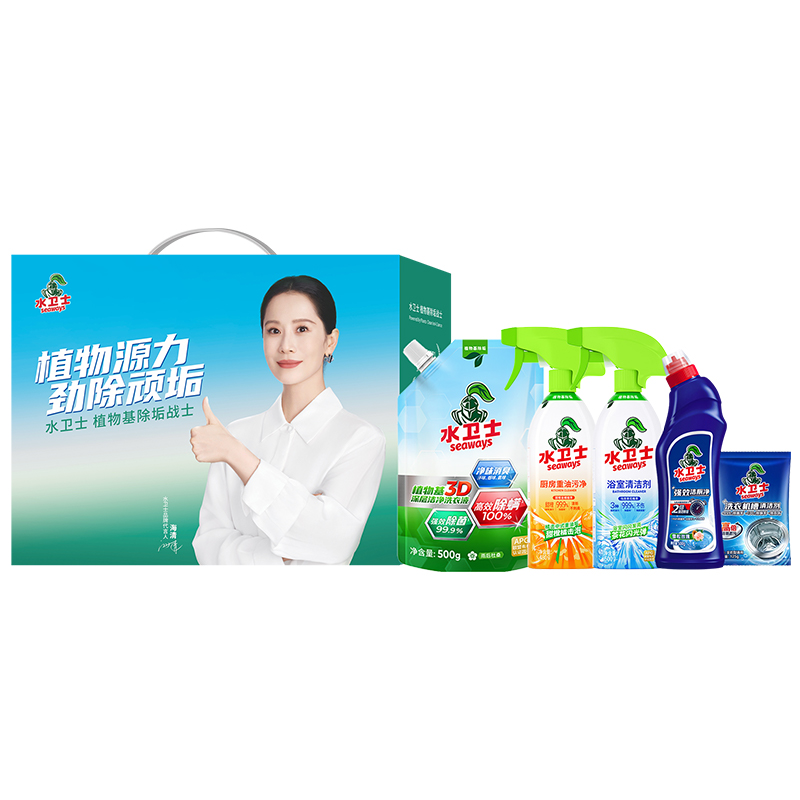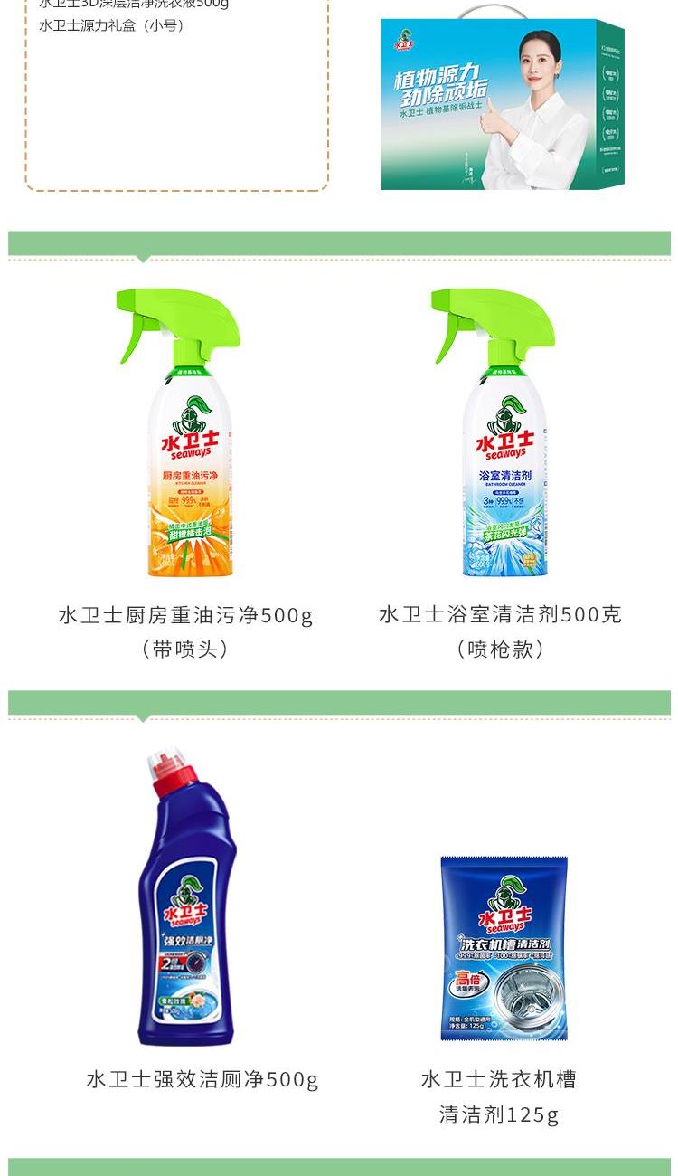 水卫士厨房重油污净500g(带喷头) 水卫士浴室清洁剂500克(喷枪款) 水卫士强效洁厕净500g 水卫士洗衣机槽清洁剂125g 水卫士3D深层洁净洗衣液500g 思珀莱源力礼盒(净含量2125g 小号)