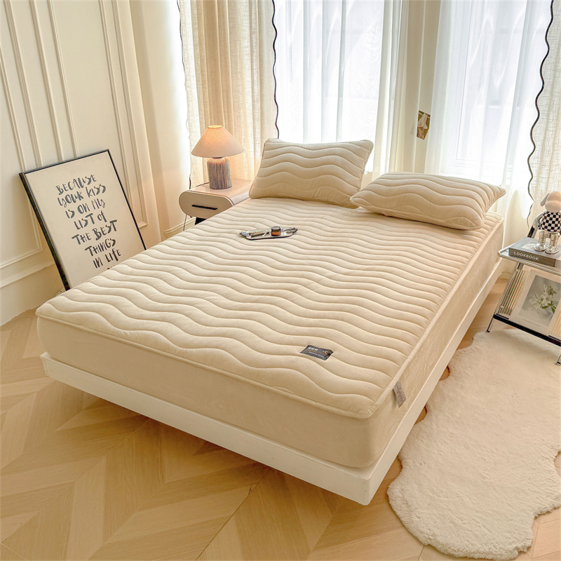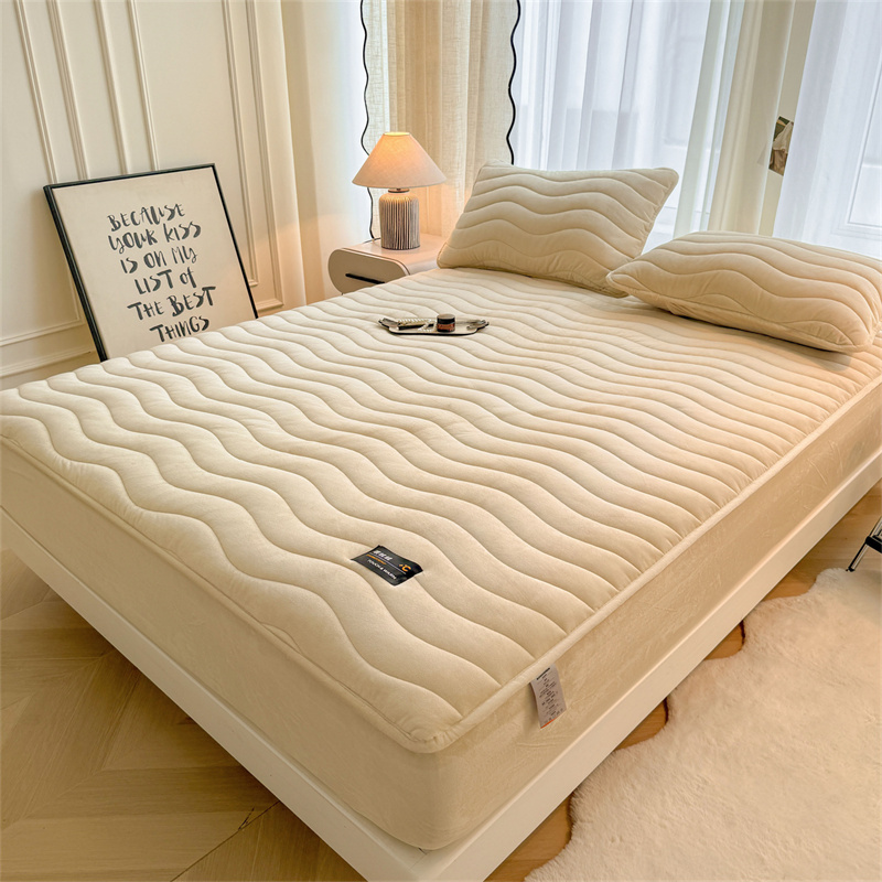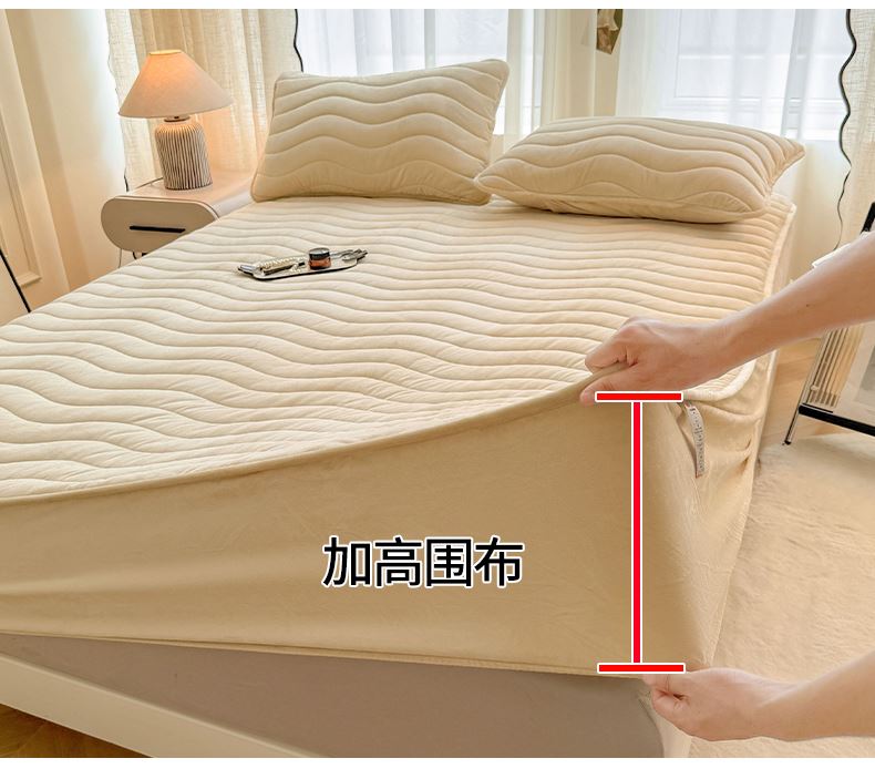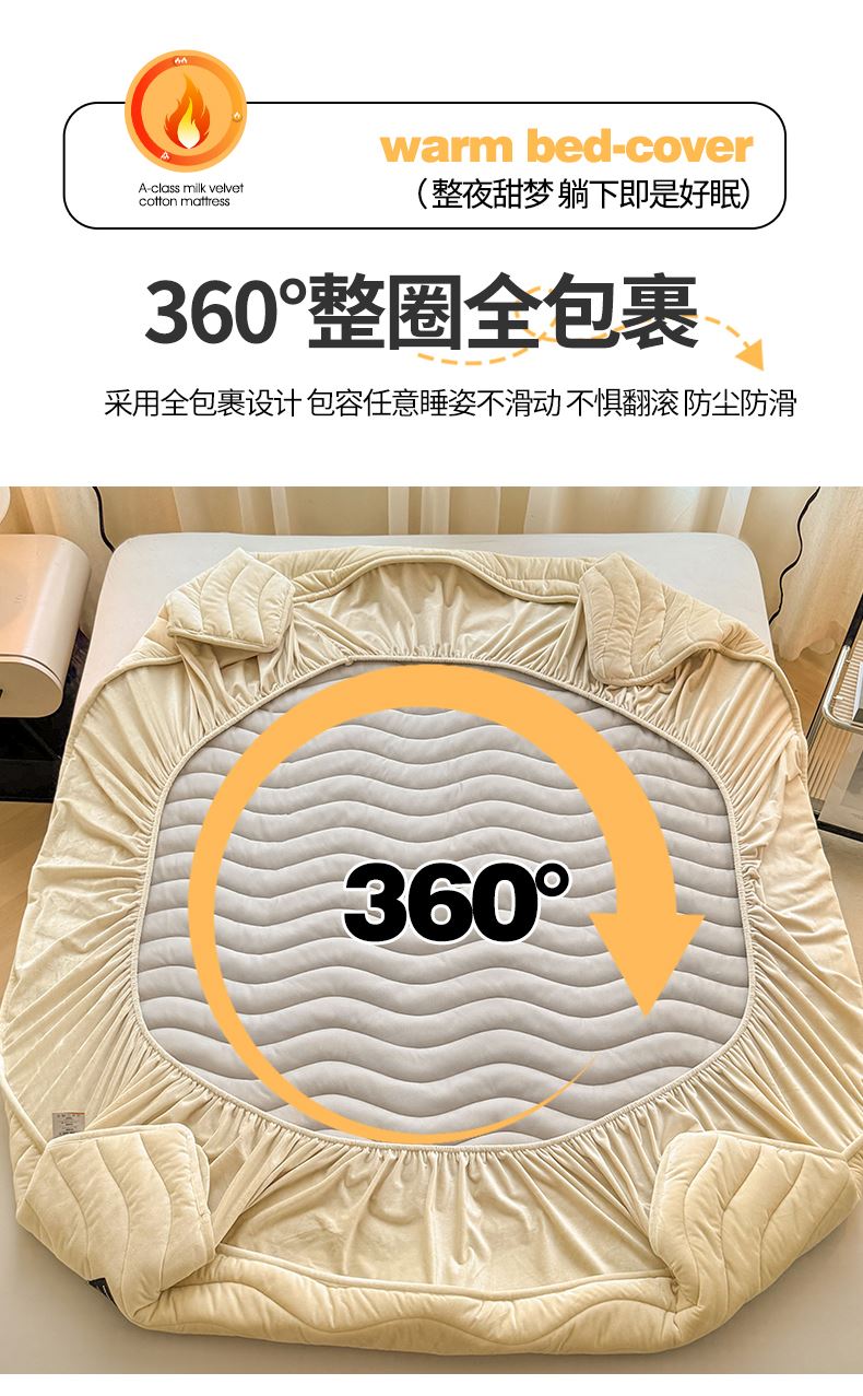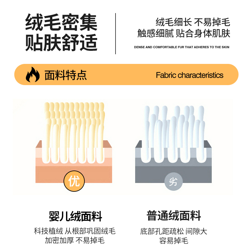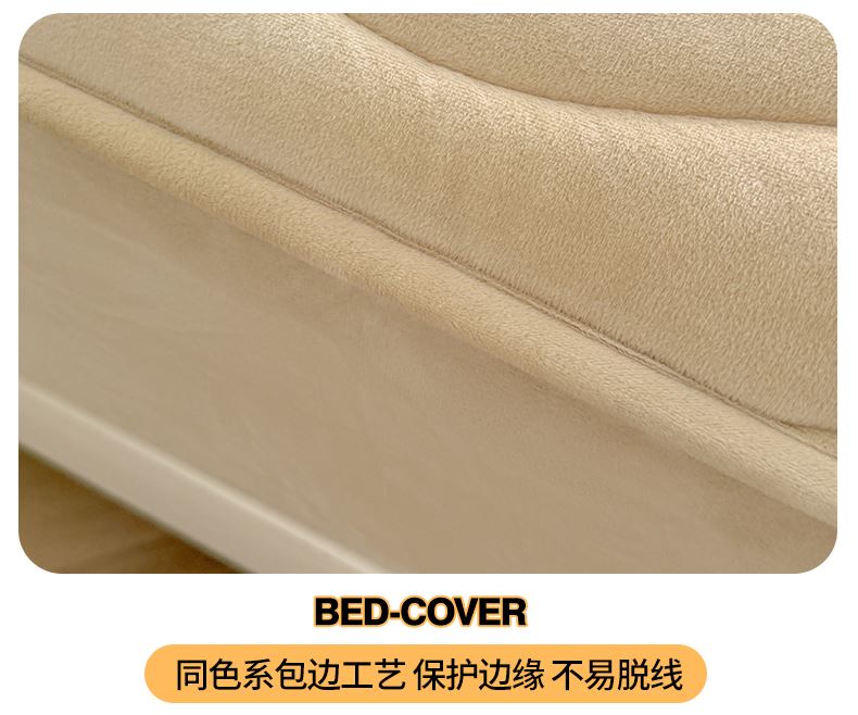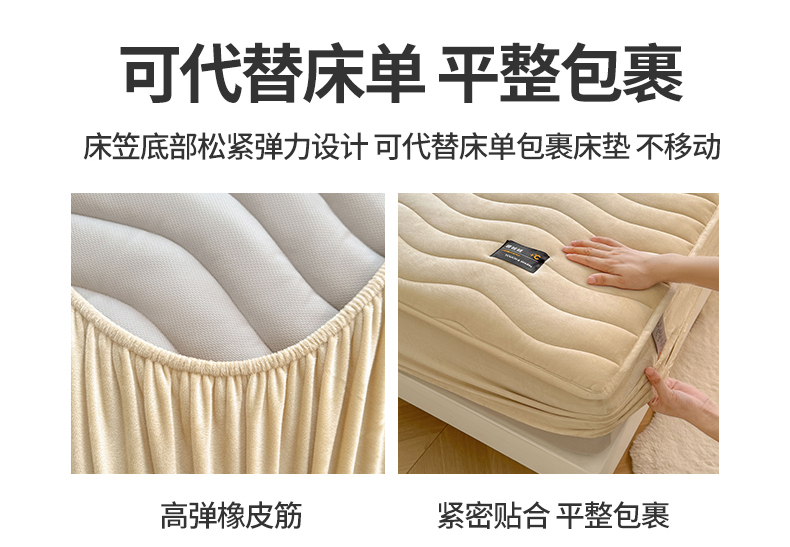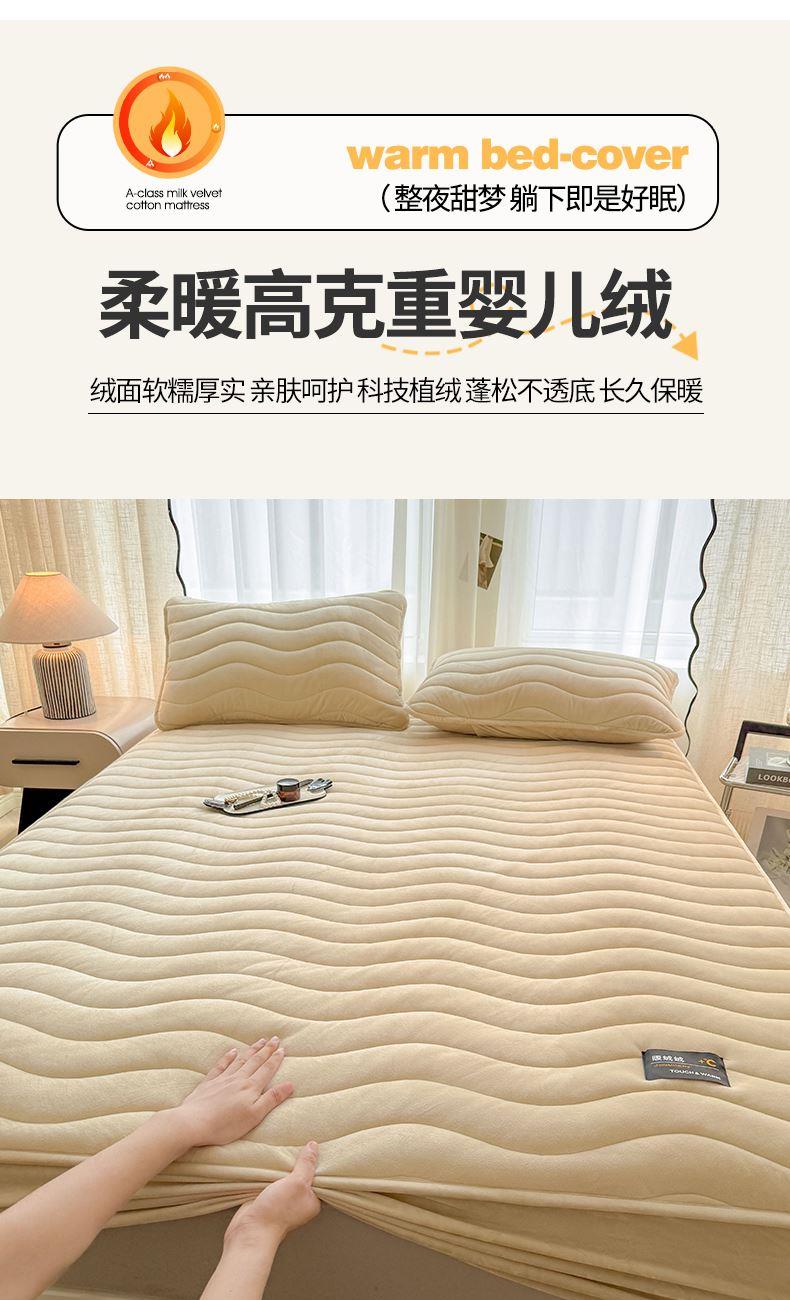 面料:短毛绒(聚酯纤维) 填充:聚酯纤维 规格:180cm*200cm 枕套:48cm×74cm 暖绒相伴,唤醒睡眠新动力,A类高克重保暖夹棉床笠,绒面软糯厚实 亲肤呵护 科技植绒蓬松不透底,长久保暖。360°整圈全包裹,采用全包裹设计,包容任意睡姿不滑动,不惧翻滚、防尘防渭。