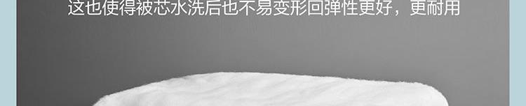 面料材质: A版:纬向:82%聚酯纤维+18%聚酰胺纤维 经向:聚酯纤维 B版:聚酯纤维 填充材质:聚酯纤维 规格尺寸:200*230cm 填充重量:390g 外箱尺寸: 54*44*76cm 采用涤锦面料,表面附有细密的绒毛,手感绵密,亲肤舒适;耐磨性提高,经久耐用。锦纶自带凉感。 填充中空纤维,经过精细配棉、开松、铺棉等多道工序加工而成,采用层层叠加的形式手感更加的柔软舒适,后道烫光工艺使得被芯更加不容易跑毛,更加经久耐用;
