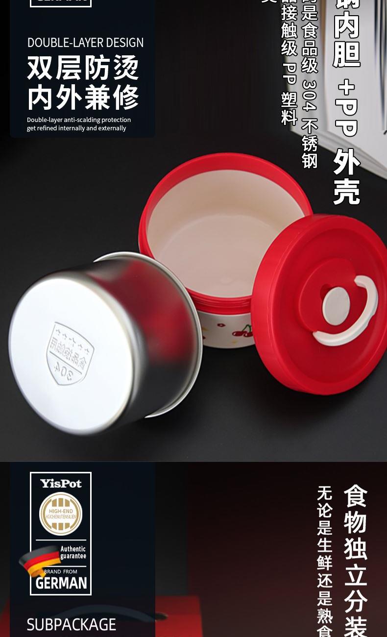 型号:YP-2316 规格:600+600ml 材质:304食品级不锈钢 双层中空,隔热不烫手 可微波炉加热 独立可拆卸304内胆,可注水加热