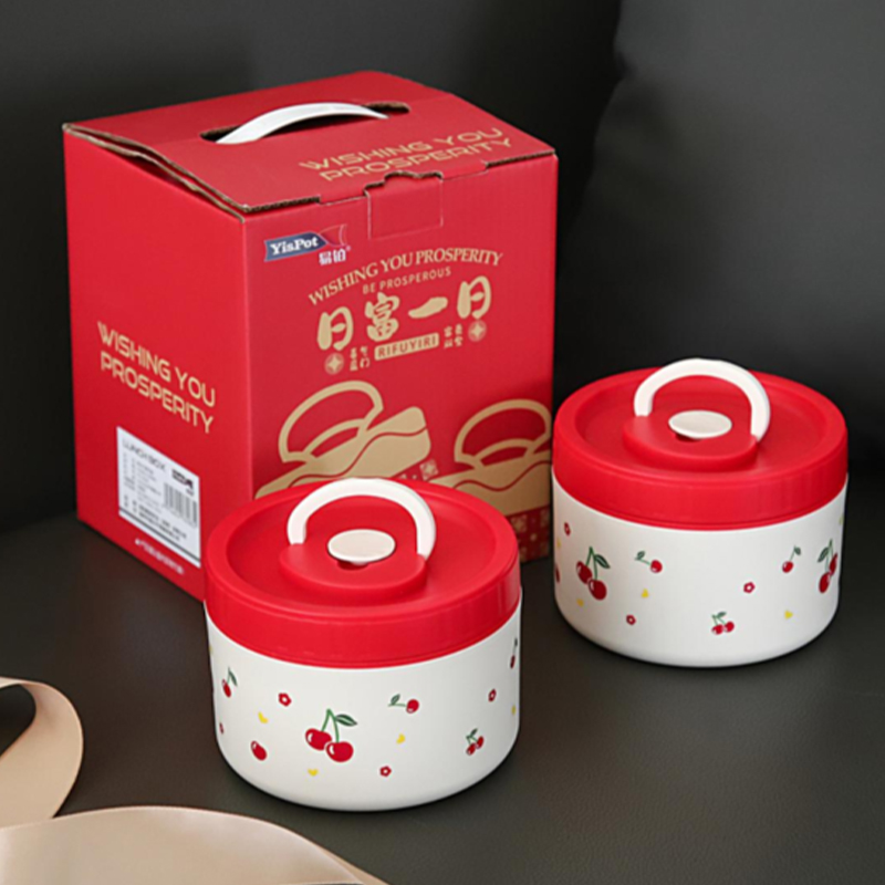 易铂樱桃红饭盒两件套YP-2316年底开门红促销