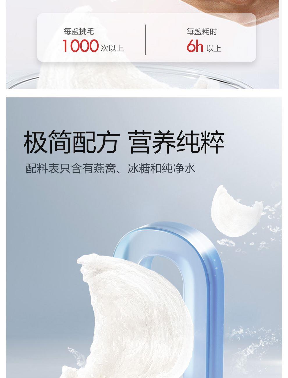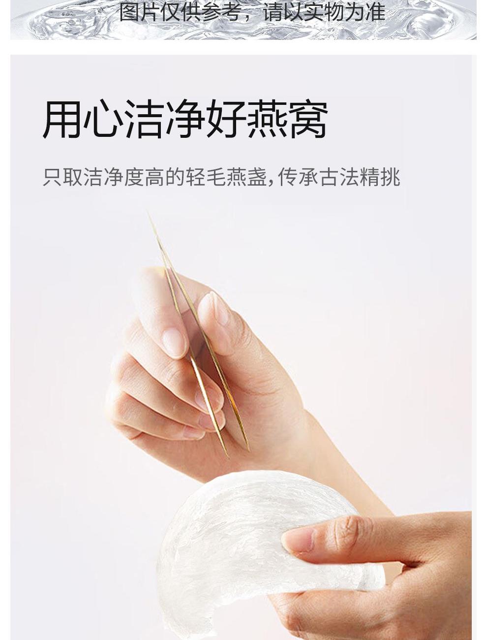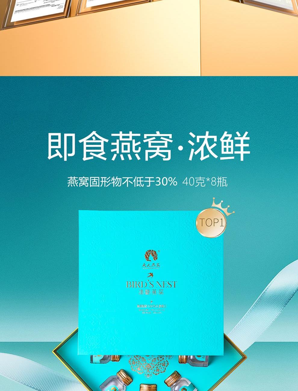 规格:320克(40克*8瓶)、燕窝固形物不低于30% 卖点: 燕窝原料精选马来西亚、印尼森林雨季燕盏,洁净度更高,泡发率更好。121℃,1140秒数控,科学炖煮,保留燕窝营养,口感细腻爽滑。坚持 0添加 0色素 0防腐剂,孕妈和宝宝也可以放心享用。一瓶一码可溯源,开盖即食,开启滋补。