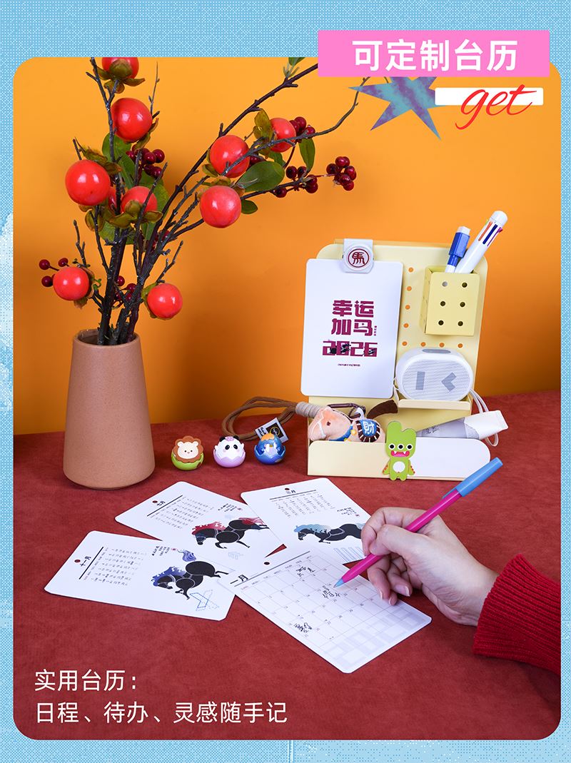 贪吃猫文创2026马年好运日历洞洞板桌面收纳双色可选