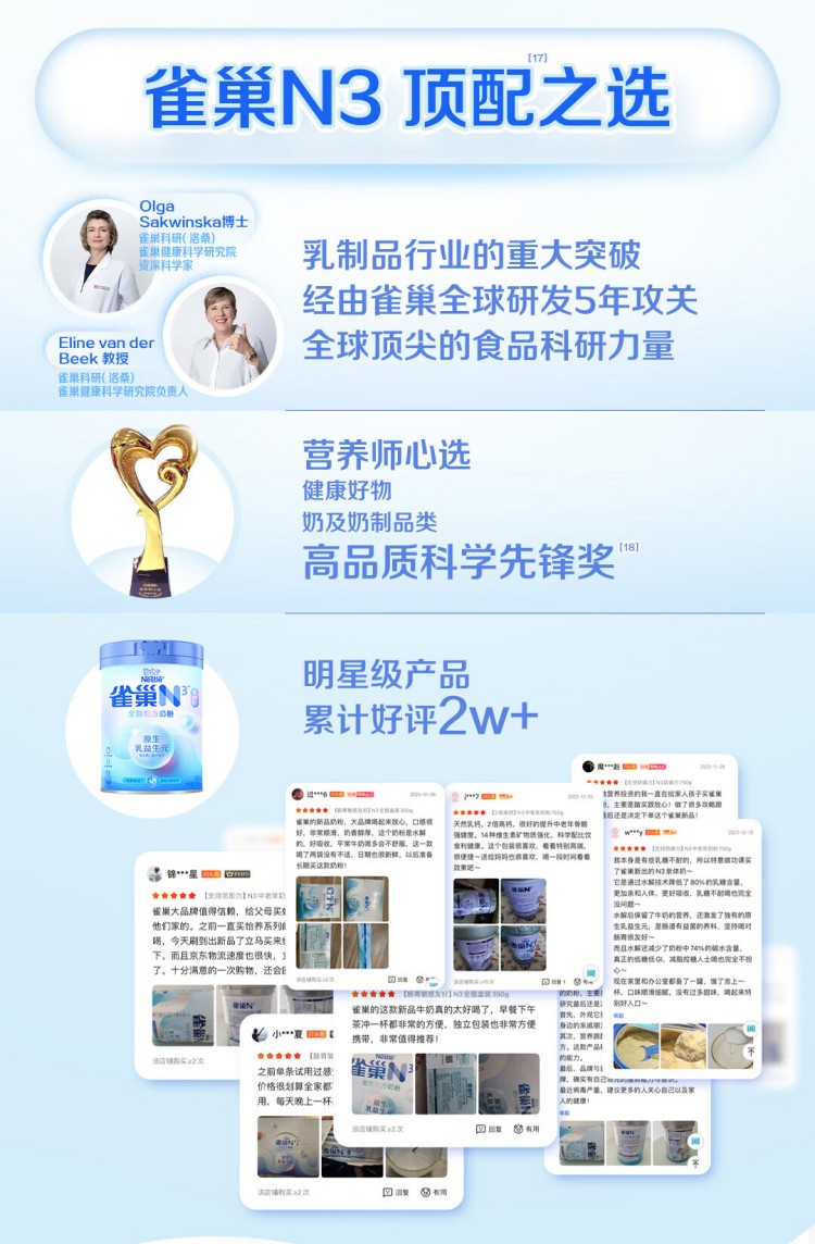 雀巢(Nestle)N3亲体奶全脂配方奶粉750g罐装