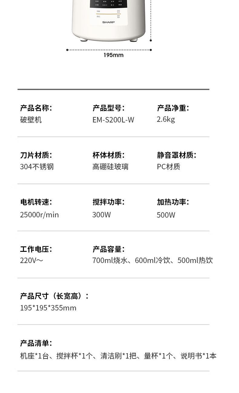 夏普破壁机EM-S200L-W