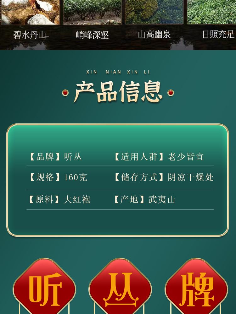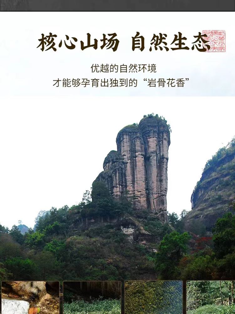外形:紧结、壮实、稍扭曲。 色泽:带宝色或油润;整碎:匀整。 香气:锐、浓长或幽、清远; 滋味:岩韵明显,固味甘爽,杯底有香气。 汤色:清澈、艳丽、呈深橙黄色。 【重量】:160g(20泡) 【配件】:小泡茶+礼盒+手提袋 【口味】:清香型 【产地】:福建·武夷山