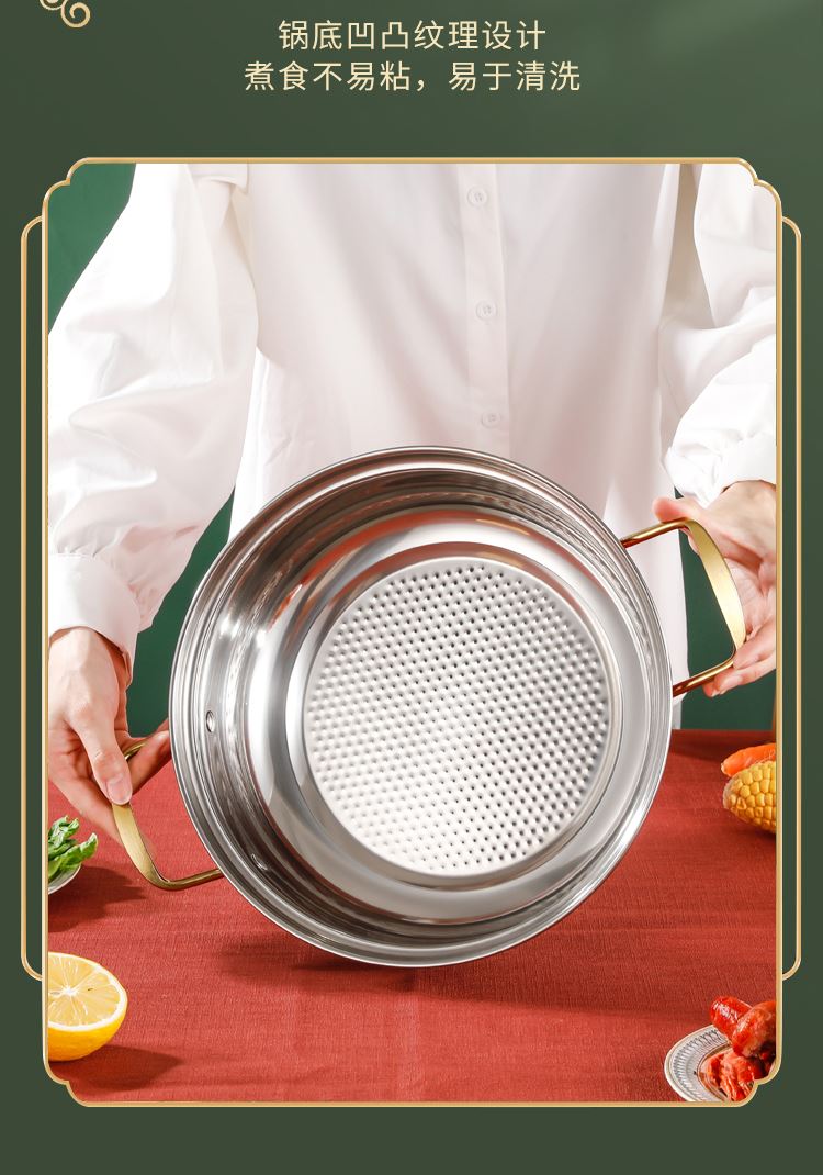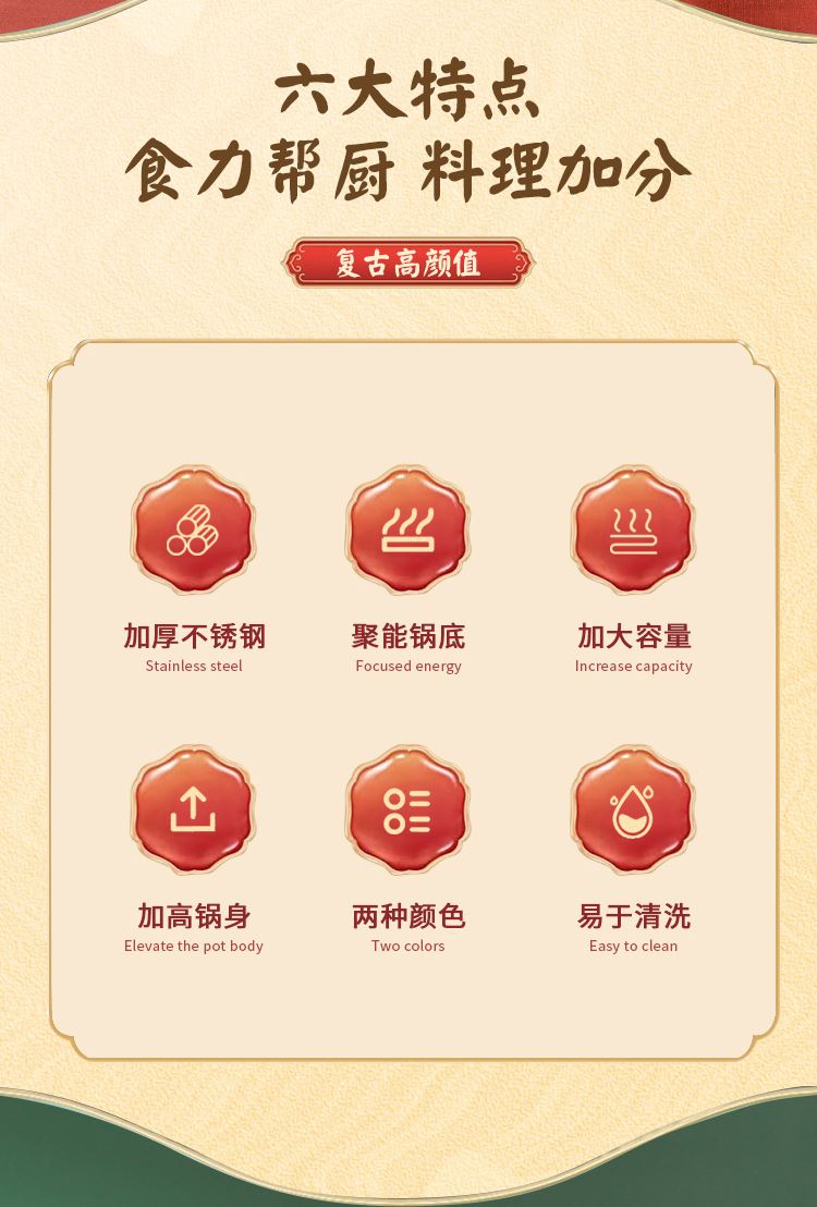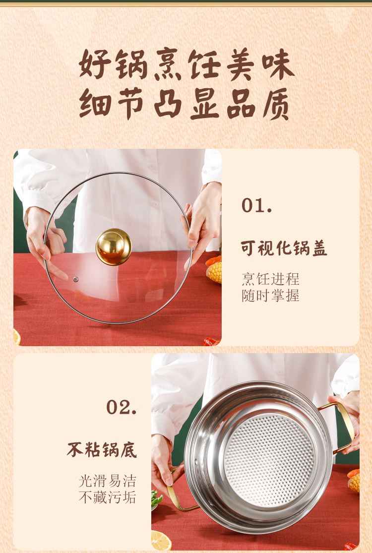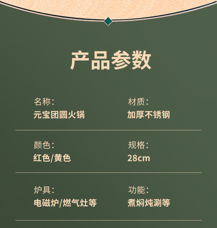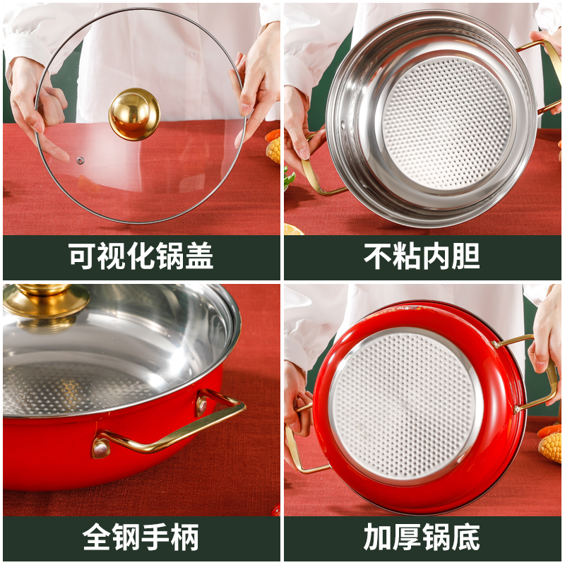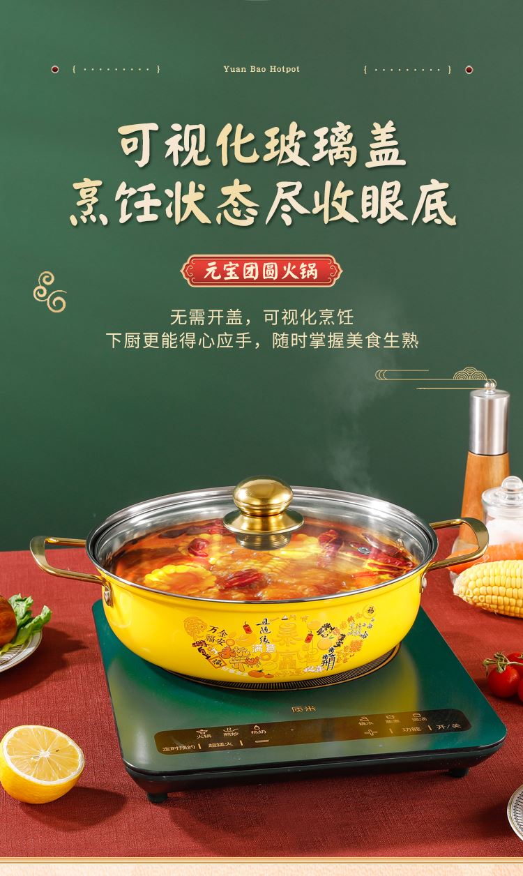 产品规格:28cm 产品材质:410不锈钢 包装方式:opp透明袋+手提彩盒 彩盒尺寸:32*10*29CM 外箱尺寸: 65*64*59.5 cm 送礼就送暴富火锅,有新意,锅暖人心, 礼品赠送,活动礼品、员工福利、商务馈赠都是不错的选择。 加厚加深,快速导热,。 品尝百味,为家人煲一碗营养汤。 小聚热闹食光,有说有笑有美食。 大容量一锅满足家庭所需搭配精美中国风礼盒。 鱼鳞底不粘锅,快速导热,不挑炉具,涮火锅等。 温馨提示:为了保持锅身美观不建议明火使用
