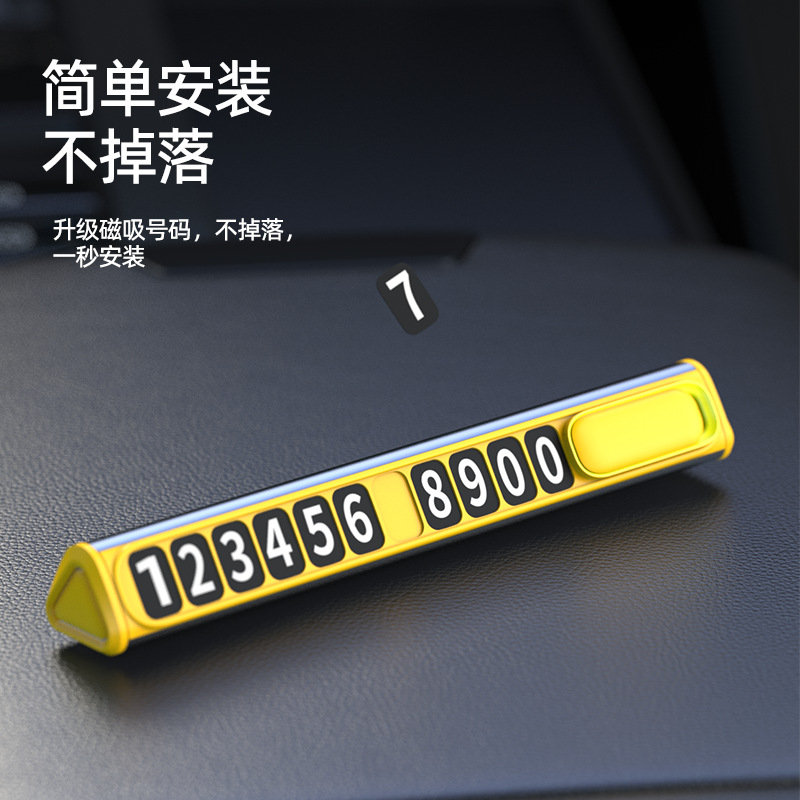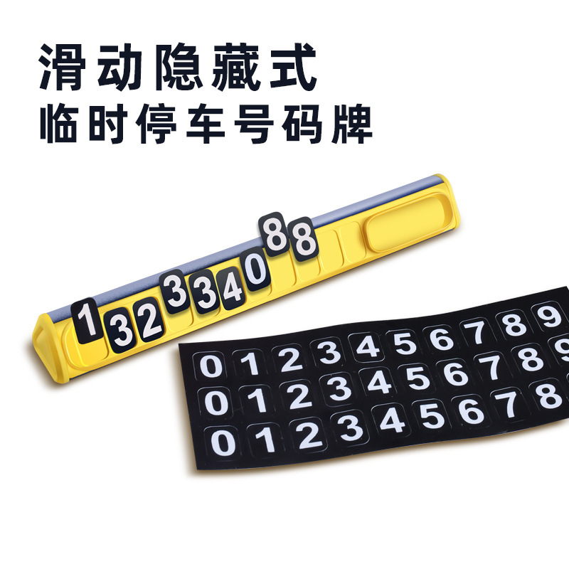 颜 色:黑色 黄色 材 质:铝合金+ABS+数字贴 产品尺寸:12.8*1.8*1.5cm 产品净重:18.5g 产品特点 软磁性号码贴 易吸附 可隐藏号码安全可靠 简约时尚 易安装牢固不脱落 轻松更换号码