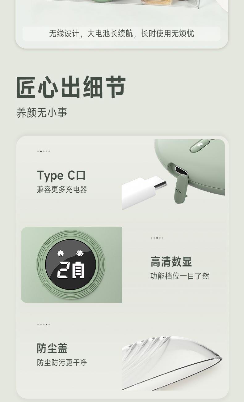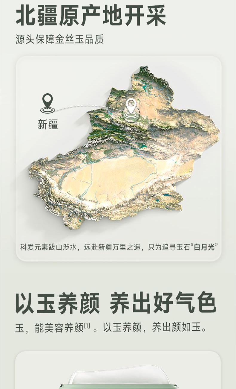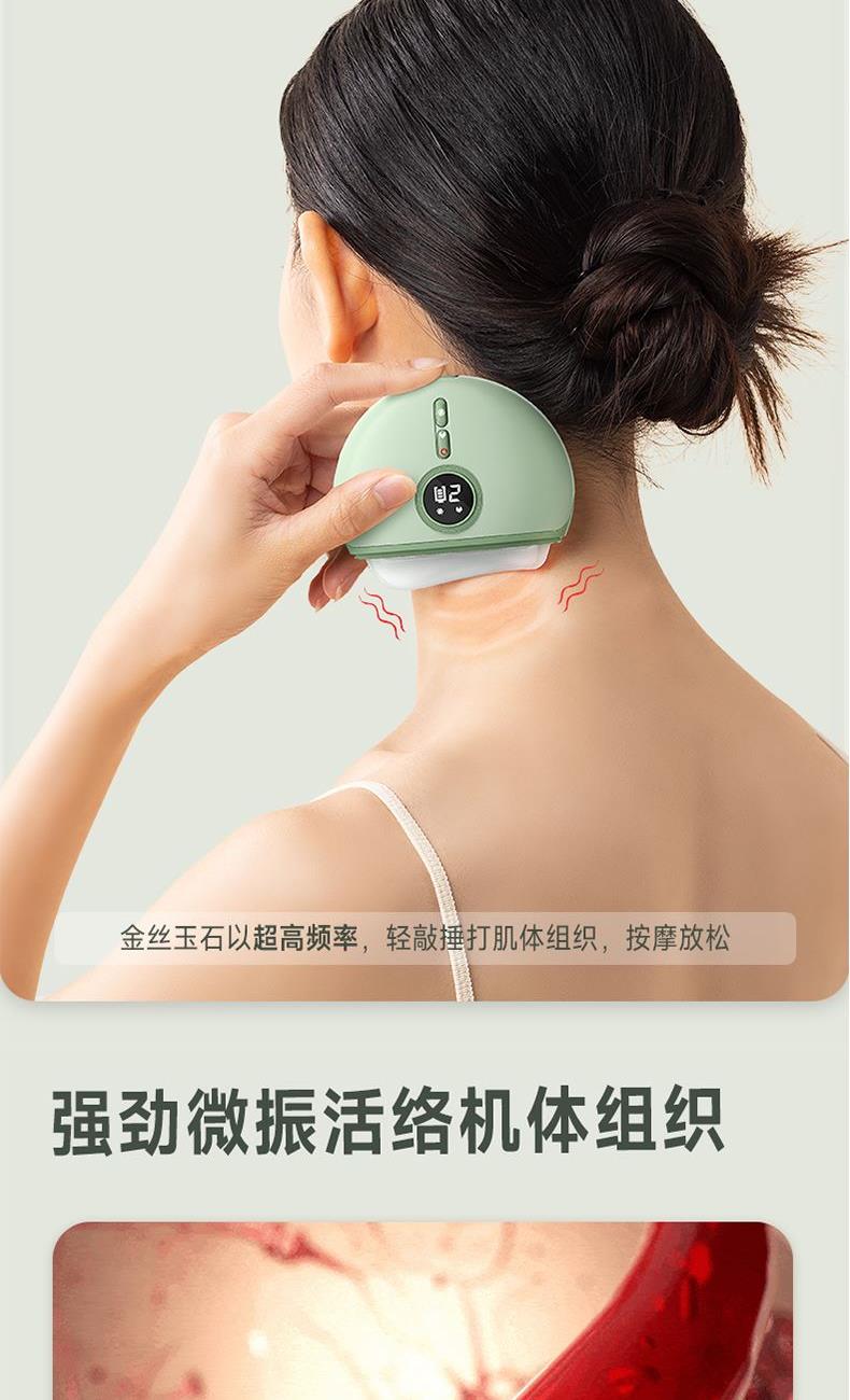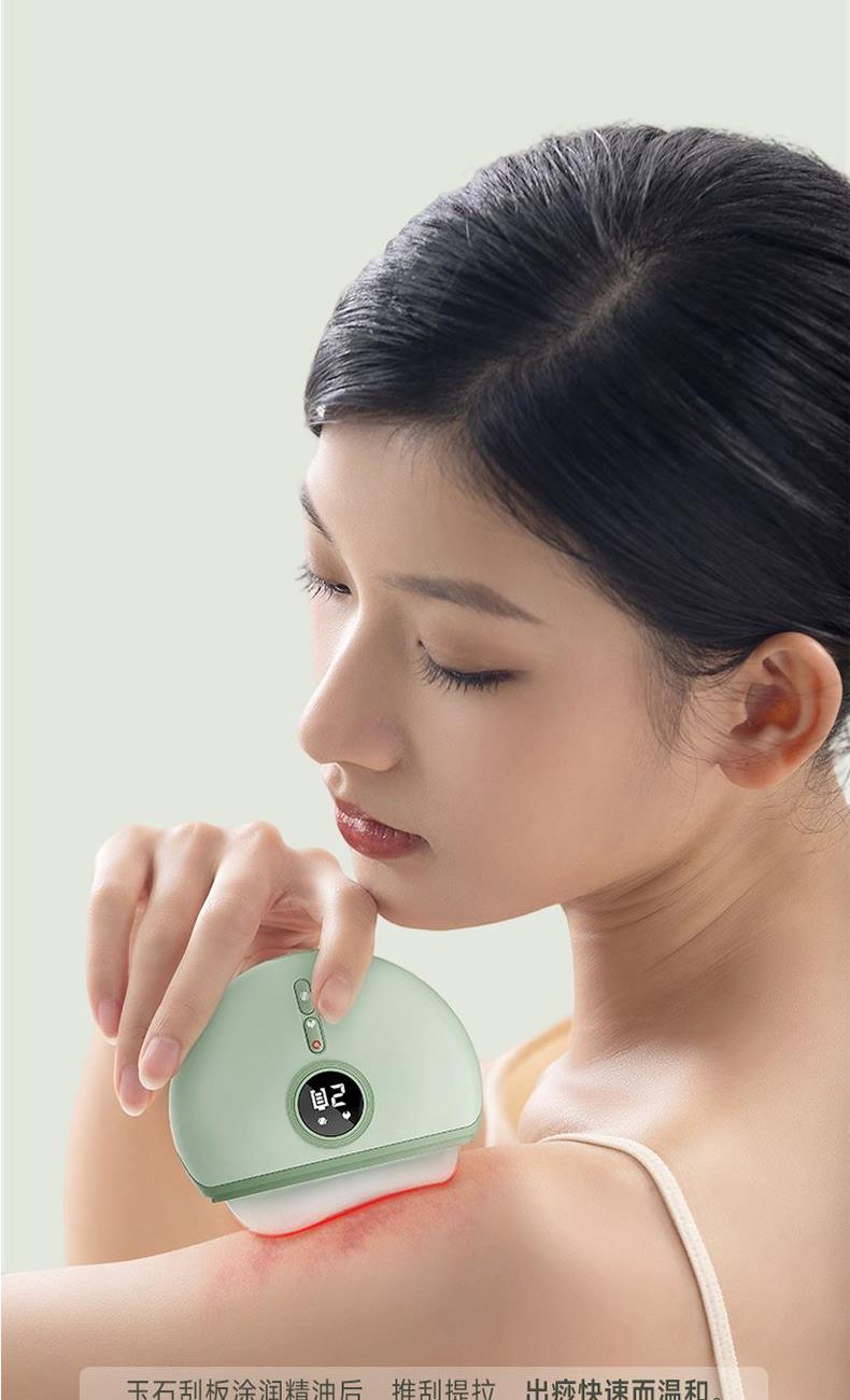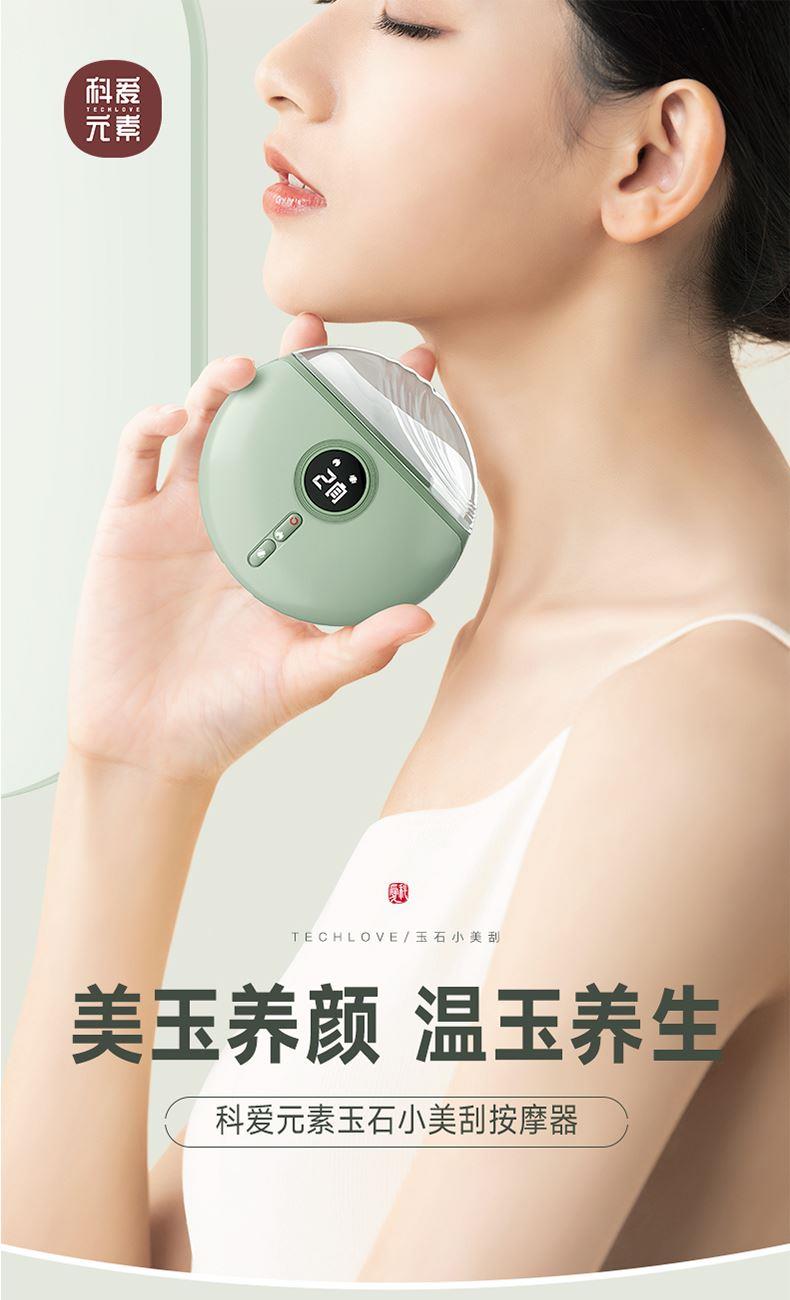 产品尺寸:约90*77.5*30mm 产品重量:约90g 额定功率:5w 产品材质:新疆金丝玉、PC、ABS、硅胶等材料 产品清单:主机*1台,说明书*1本,合格证*1张,TYPE-C USB线*1条 产品功能:金丝玉材质,富含多种有益等元素,8-15微米远红外波;3档热敷+红光+震动,调节经络气血;山型设计,玉石刮板,贴合眼部、脸部等部位;无线设计,长续航大电池,充一次用一周