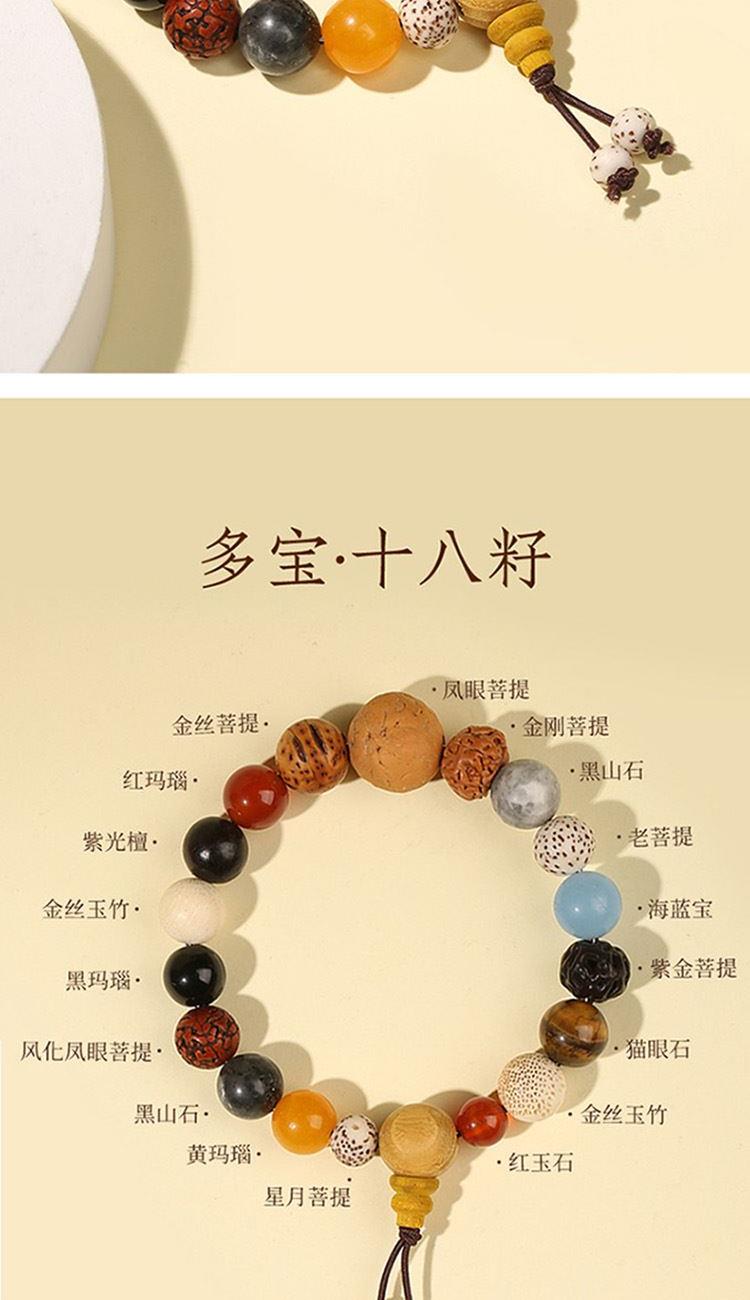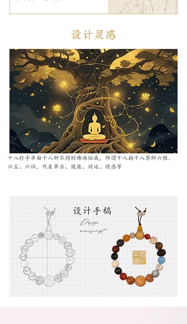 辟邪护身,诸事吉祥: 作为在寺庙中经佛法加持的圣物,寓意十八籽具有强大的护身辟邪功效,能保佑佩戴者平安健康,远离灾祸,所求皆如愿。 静心定志,烦恼消散: 盘玩手串的过程本身就是一种禅修,有助于安抚焦虑情绪,让内心回归平静,专注当下,戒除焦躁。佩戴十八籽,寓意着约束六根、远离六尘、清净六识,从而达到身心清净、解脱烦恼的境界。它提醒修行者要看清世界的本质,不执着于表象。