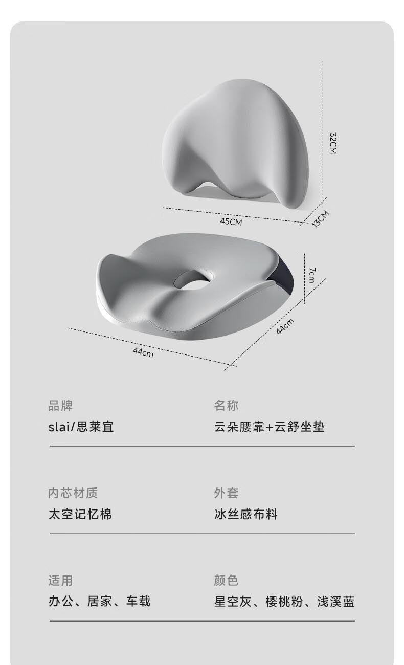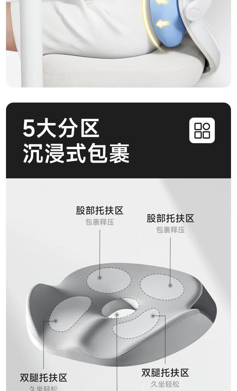 【腰靠坐垫】专为久坐人群设计。 【多方位托付腰部】顶腰不顶臀,贴合支撑。 【曲线人体工学设计坐垫】久坐尾椎舒压。
