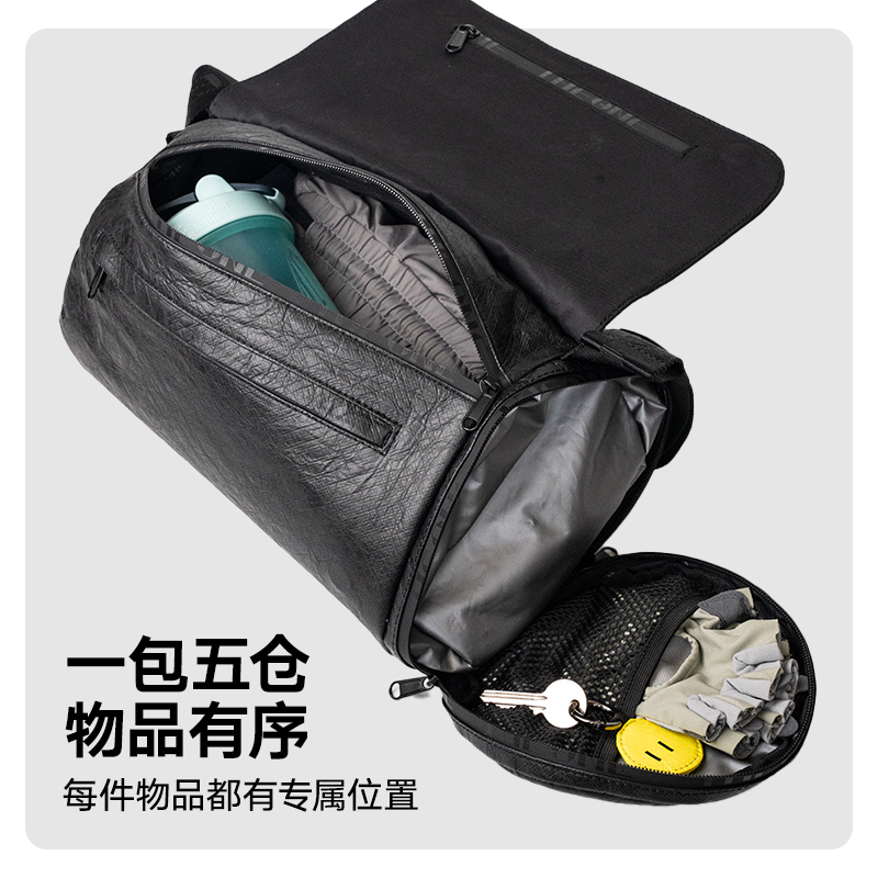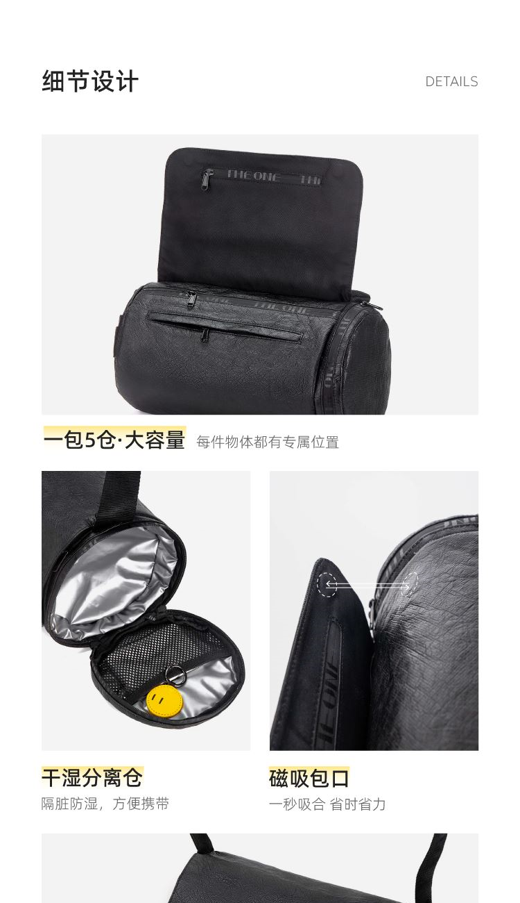 ③6l的超大容量,干湿分离湿物不侵,干湿各就各位,轻松出行,一包五仓物品有序每件物品都有专属位置