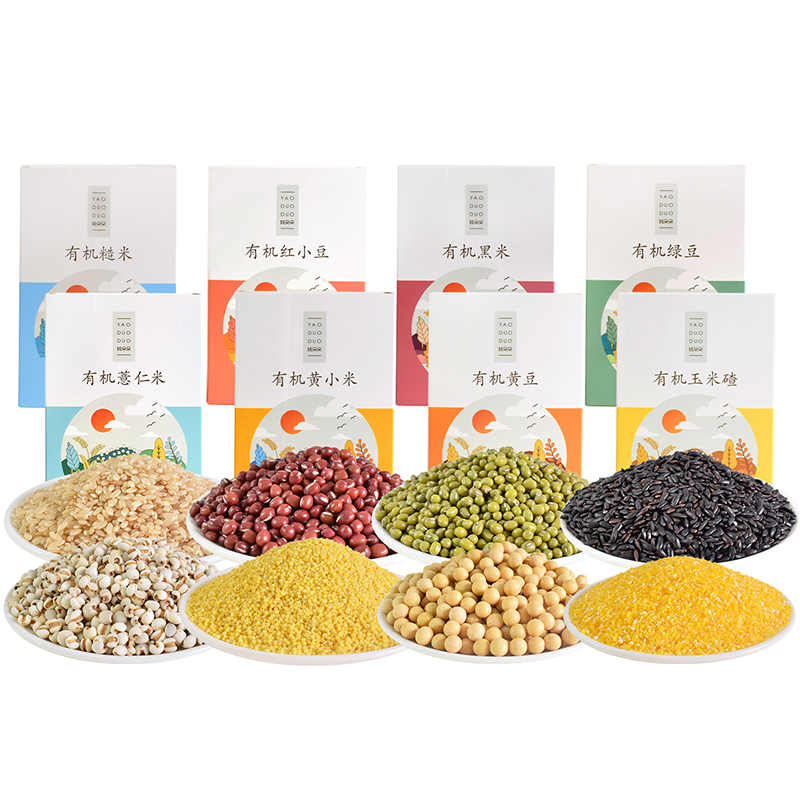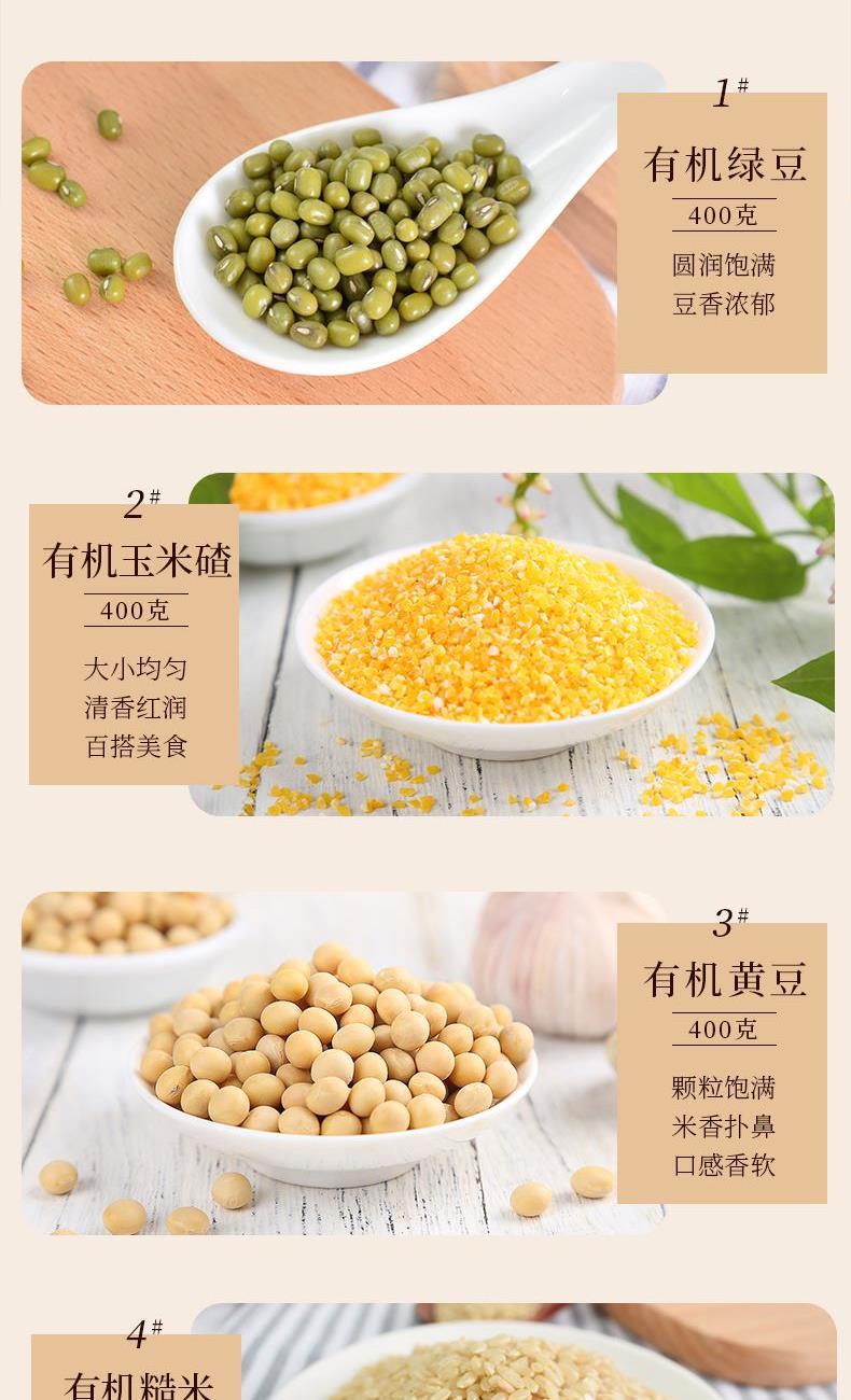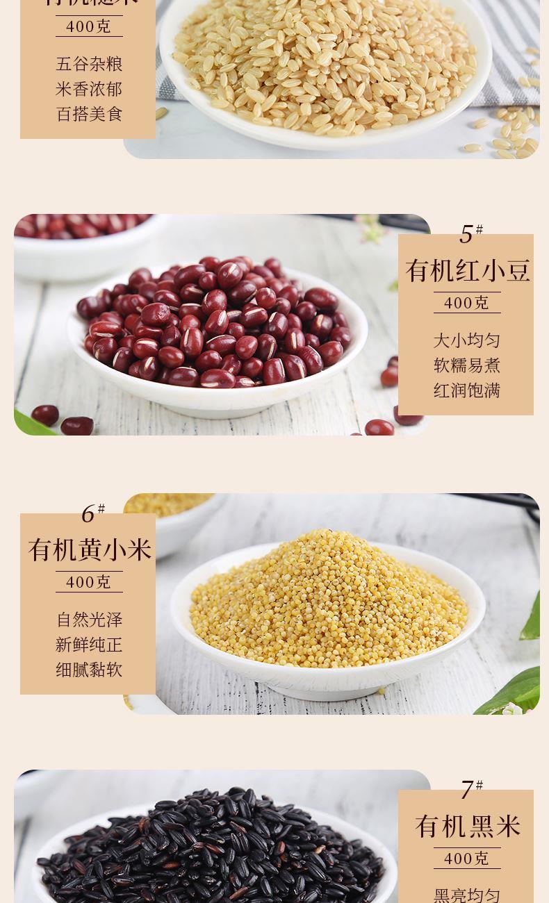有机红小豆400克 有机薏仁米400克 有机黄豆400克 有机玉米碴400克 有机黄小米400克 有机糙米400克 有机黑米400克 有机燕麦米400克 五谷丰登礼盒(红色)