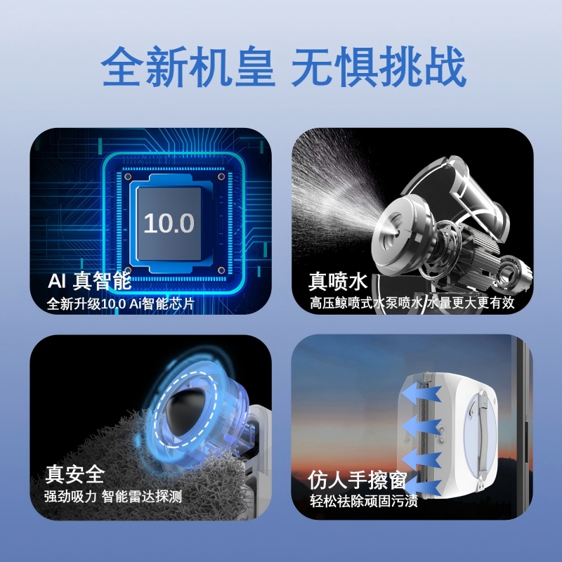 • 追鲸擦窗机器人擦窗神器全自动智能无死角高压喷水擦玻璃机器人