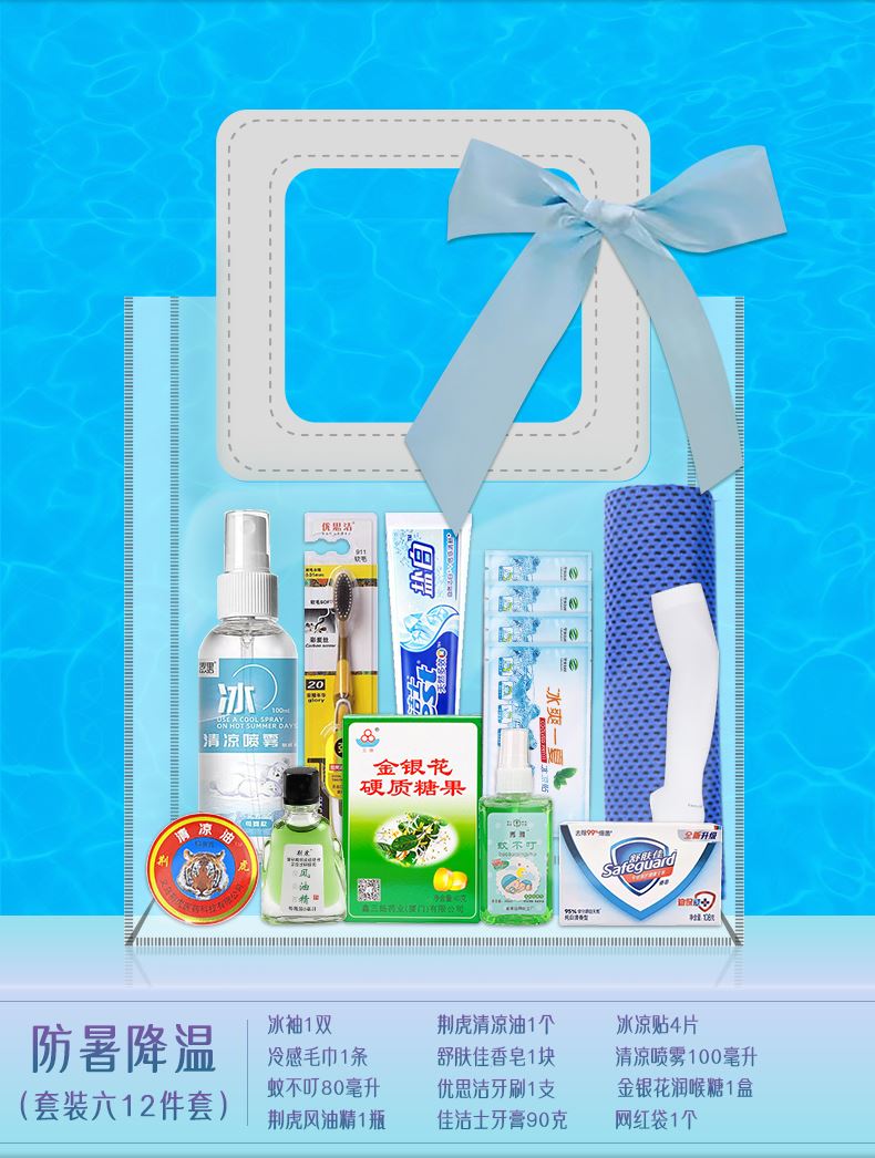 1.注:商城报价对应首张主图款式! 其他套装参考细节图,费用另计! 2. 咨询下单请备注好产品信息! 3.首图款式产品明细:防暑降温(套装一7件套):防晒冰袖1双 ,冷感毛巾1条,运动水杯1个,降温喷雾1瓶,龙虎花露水1瓶,龙虎薄荷膏1袋,网红袋1个