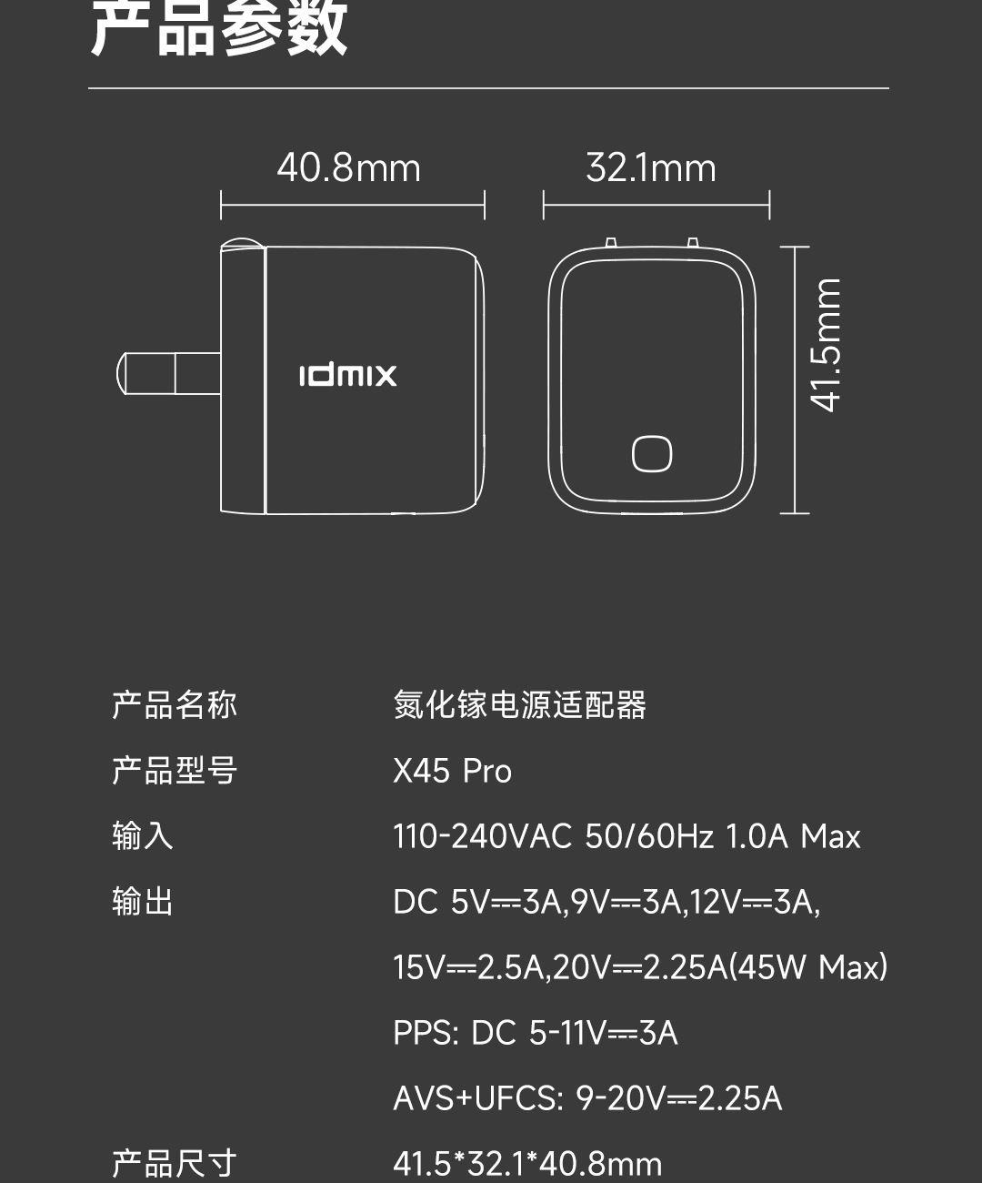 • IDMIX45W迷你智能屏充电器X45PRO