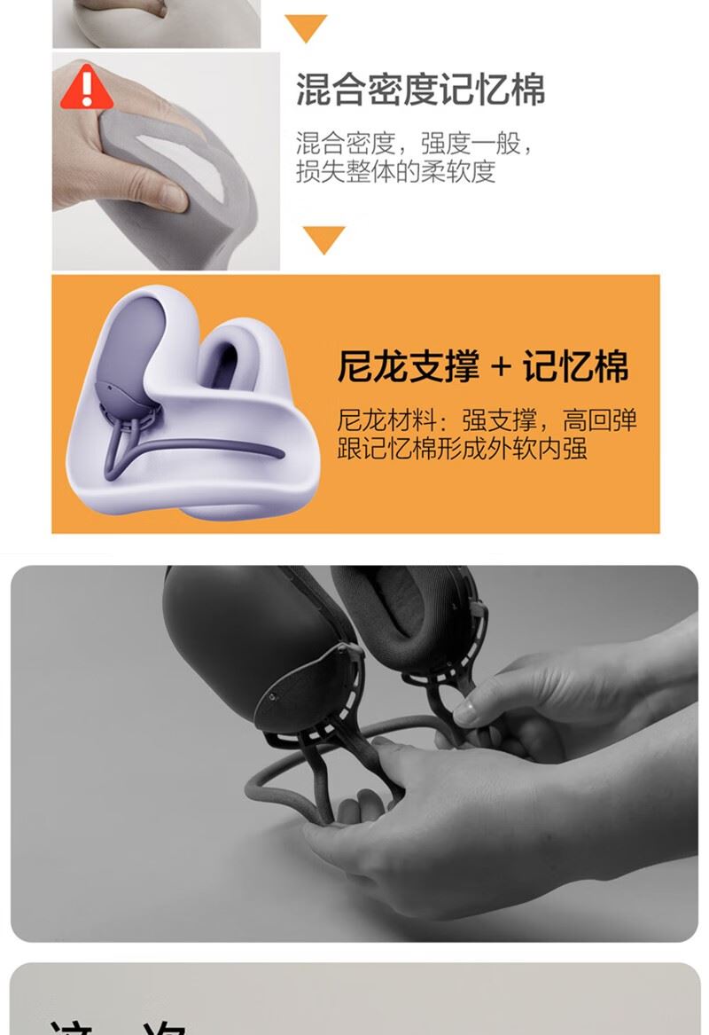 颜色尺码:活力粉S码 单台包装尺寸:195*190*202mm 单台重量:700g(含彩盒) 卖点: 1、市场唯—的降噪枕,适用场景:出差,旅行,办公室午休 2、降噪30分贝:七层材料打造的工业级降噪技术,—秒回到深夜12点档 3、支撑力:行业首创的内嵌nylon支架,比高密度记忆棉更能提升颈椎支撑力,不歪脖,同时Q弹舒适 4、舒适面料优等品:300g满天星布料,添加6.5%氨纶,增加枕套弹性和柔软度,没有睡纹,不易沾毛,敏感肌可用 5、柔软Rua内芯:美国Huntsman优质原料,温柔包裹头颈,不易老化,不掉粉尘