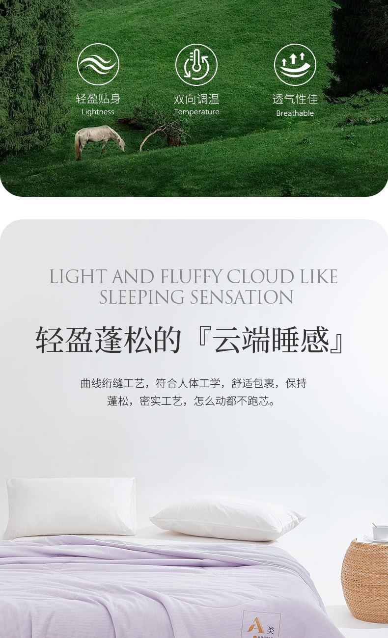 货 号:JB-1387 规 格:150*210cm 面 料:A类云纱布 填 充:聚酯纤维(A类) 总 重:900G 1.肌肤安心之选!云纱A类被,面料与填充均达A类安全标准,触感如云轻柔,带来无菌无味的安心睡眠环境。 2.云感轻柔,安心加倍!双A类品质保障,云纱布面料爽滑,填充物洁净蓬松,给宝宝和孕妈肌肤般的温柔守护。 3.为娇嫩肌肤量身打造!云纱A类被,严格遵循母婴安全标准,面料填充双A类,轻盈蓬松,呵护睡眠每一刻。