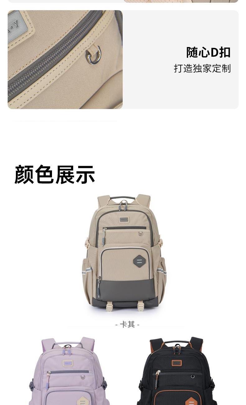 货号:CX5190 主体面料:织物;里料:织物 颜色:钢琴黑、米白、薰衣草紫 定位:150-175CM以上/ 初高中生书包 净重:0.74kg 26.2L