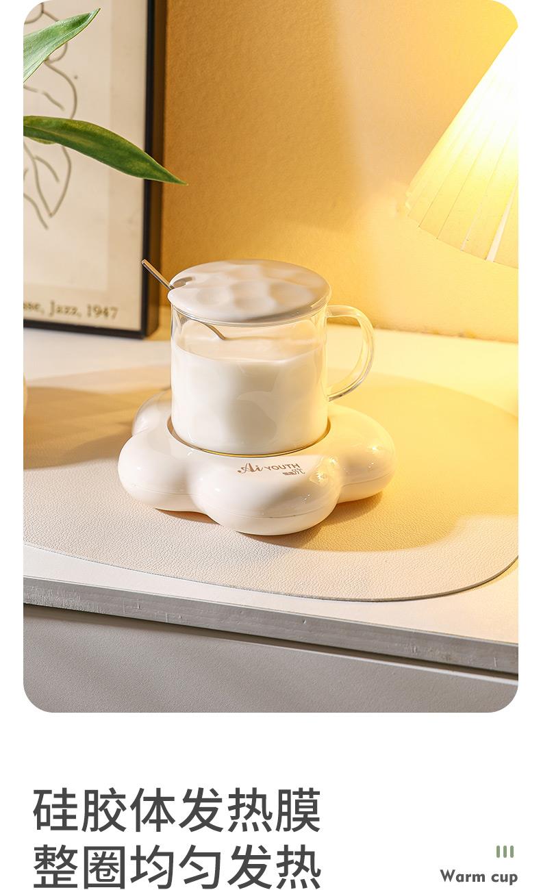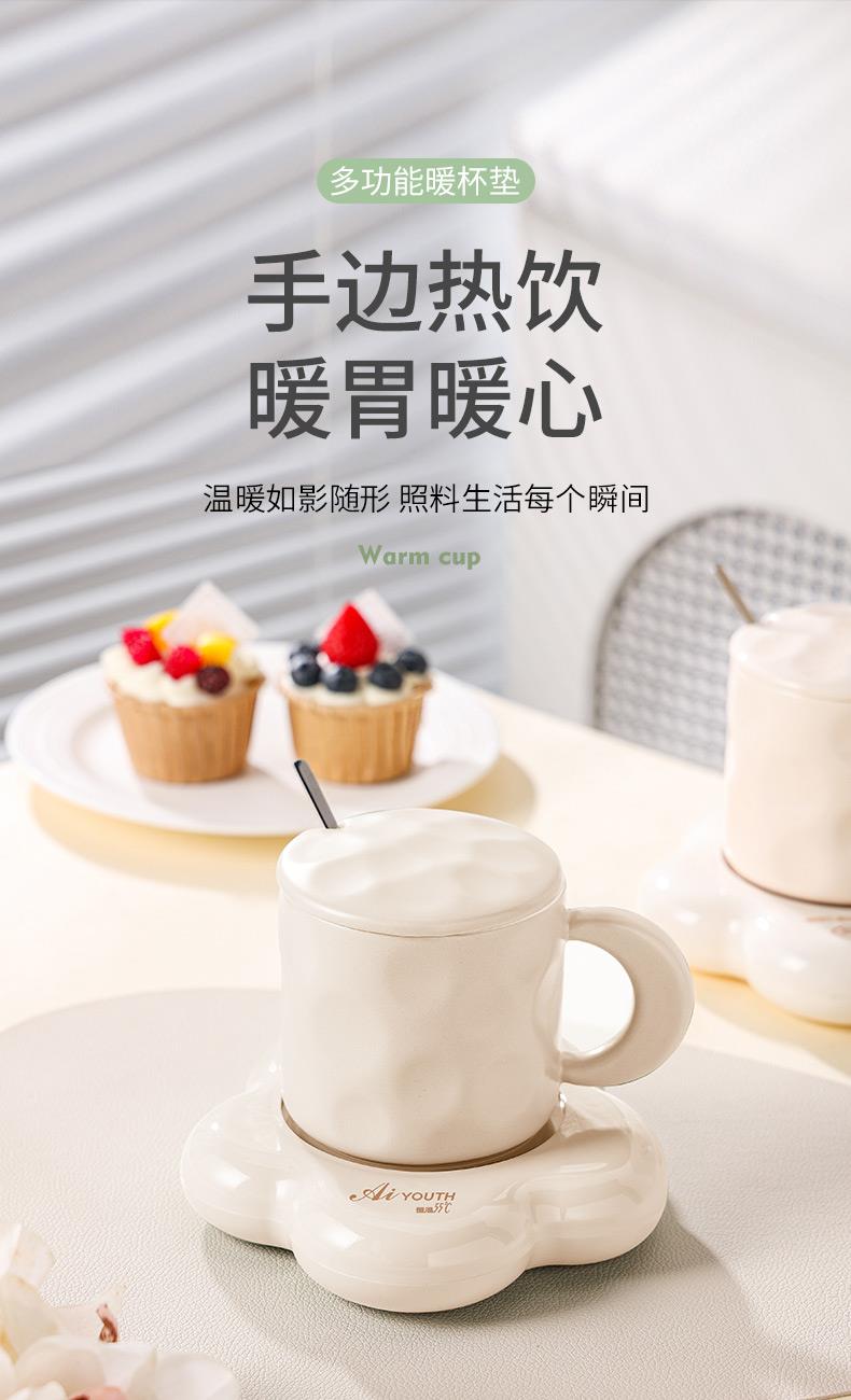 额定电压: 220V~ 额定频率:50Hz 额定功率: 16W 产品容量: 400ML 重 量: 0.8kg 颜 色 :奶油白 包装尺寸: 306*105*210mm 包装清单:陶瓷杯、不锈钢勺、重力感应恒温杯垫 主要材质:陶瓷 特色功能: 1.55℃智能控温,温暖近在手边 2.硅胶体发热,膜面板,整圈发热均匀 3.静音加热,不挑杯子,快速加热,多彩颜色 4.兼容不同款式和材质的杯型,平/薄底器具加热更快