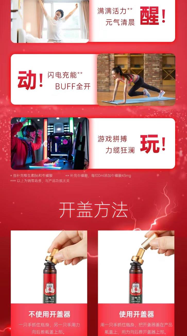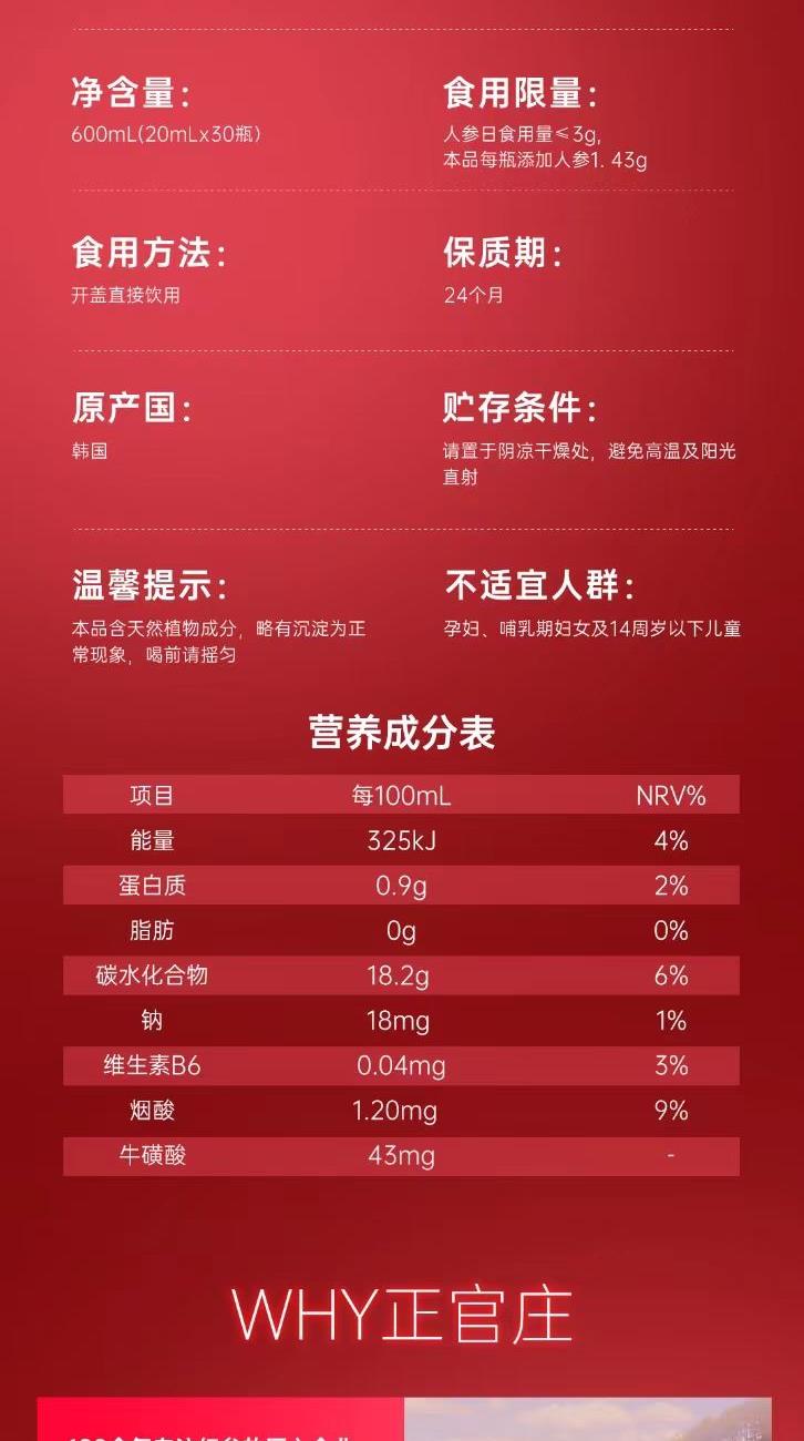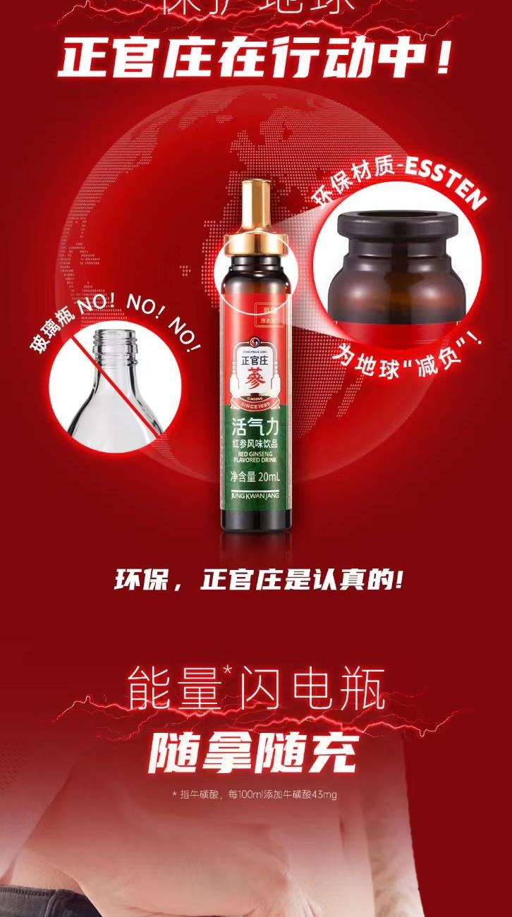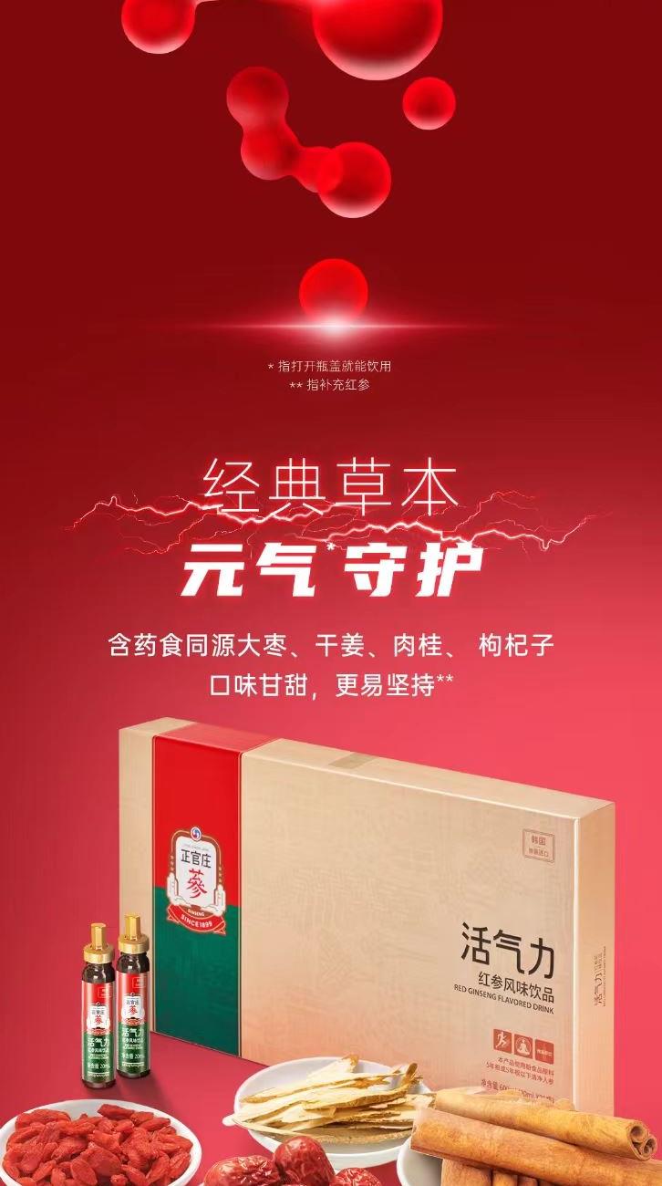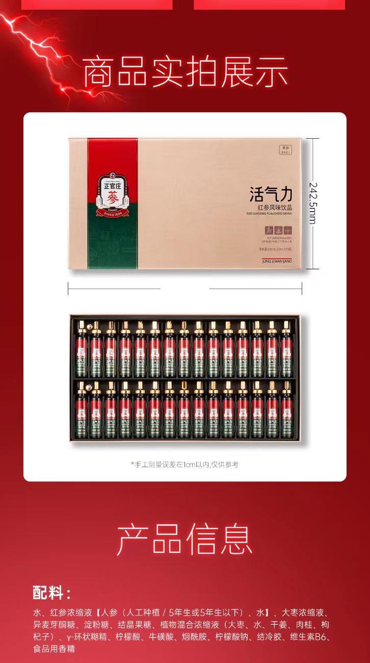 正官庄人参活气力液20ml*30瓶原装进口牛磺酸肉桂枸杞红枣