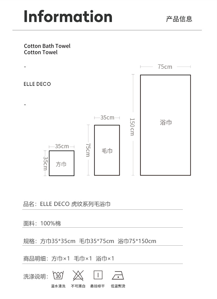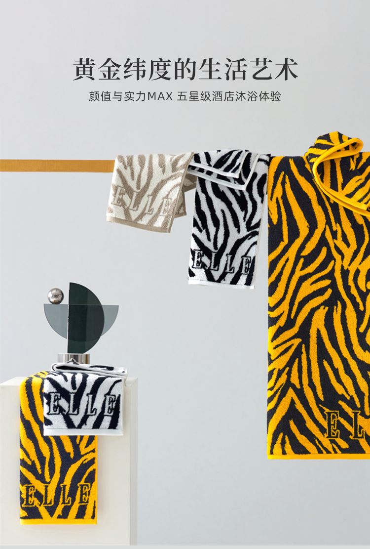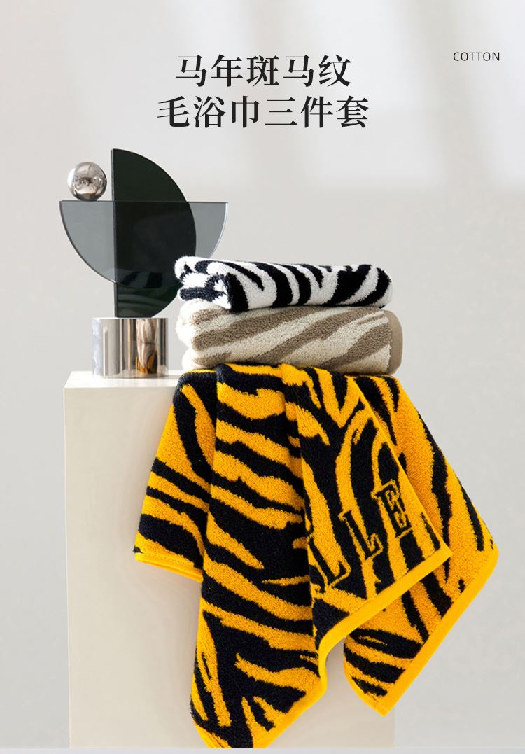 法国ELLEDECO斑马纹系列毛浴巾三件套