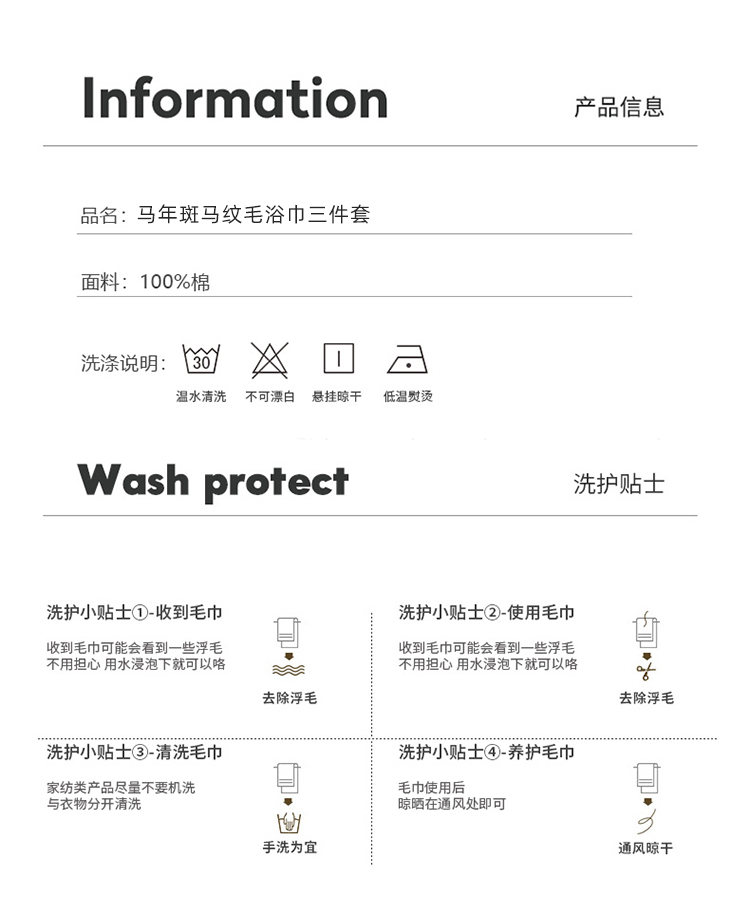 商品参数: 面料:100棉 方巾:35*35cm 60g 毛巾:35*75cm 130g 浴巾:75*150cm 550g 可选颜色:黑白、卡其、黄黑