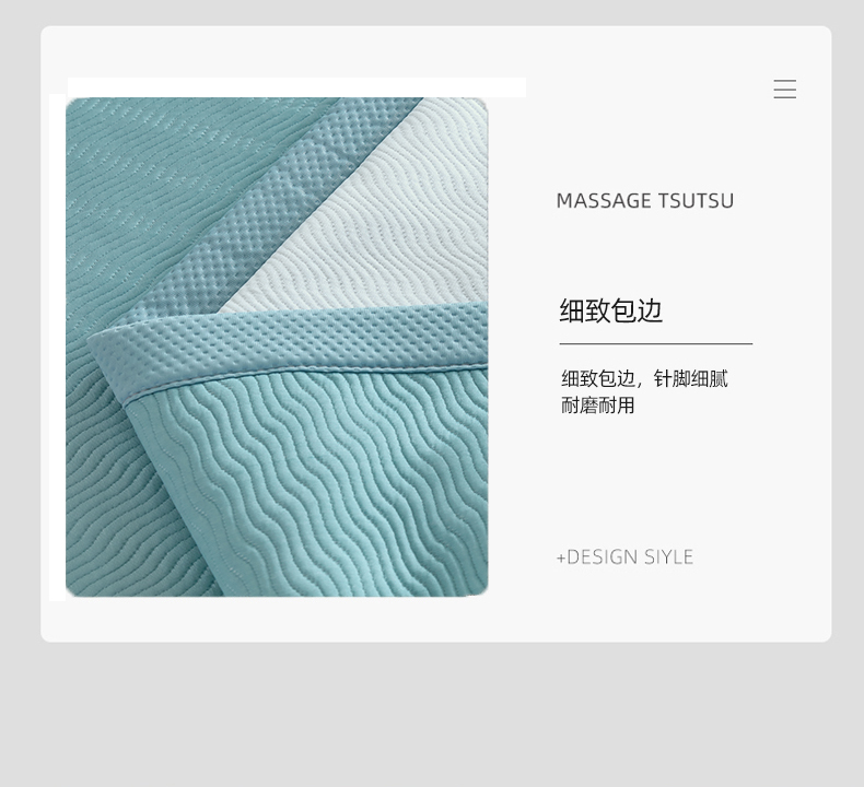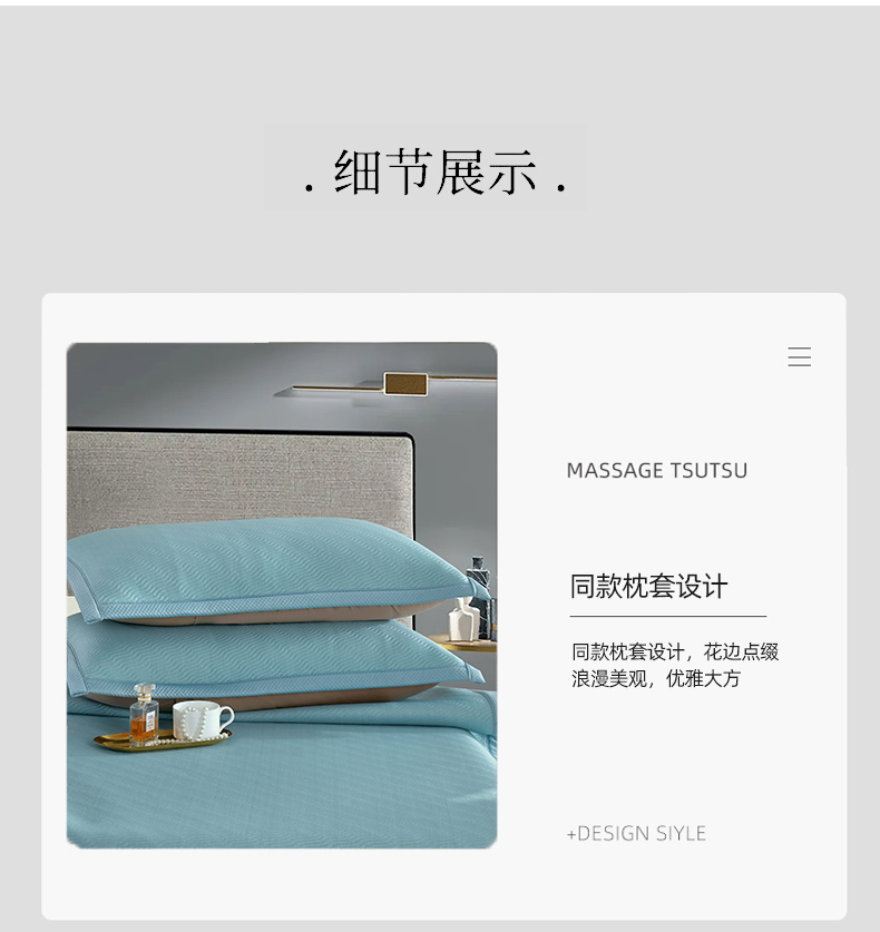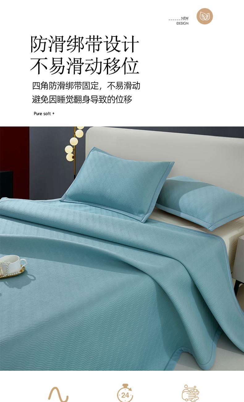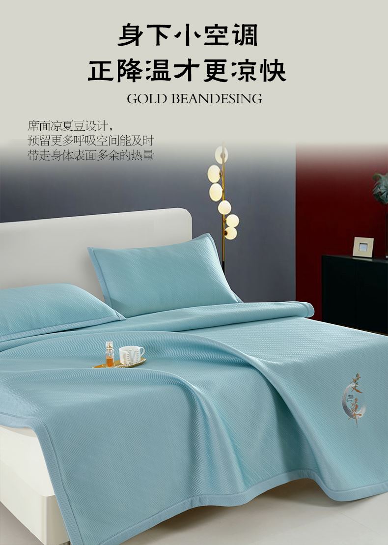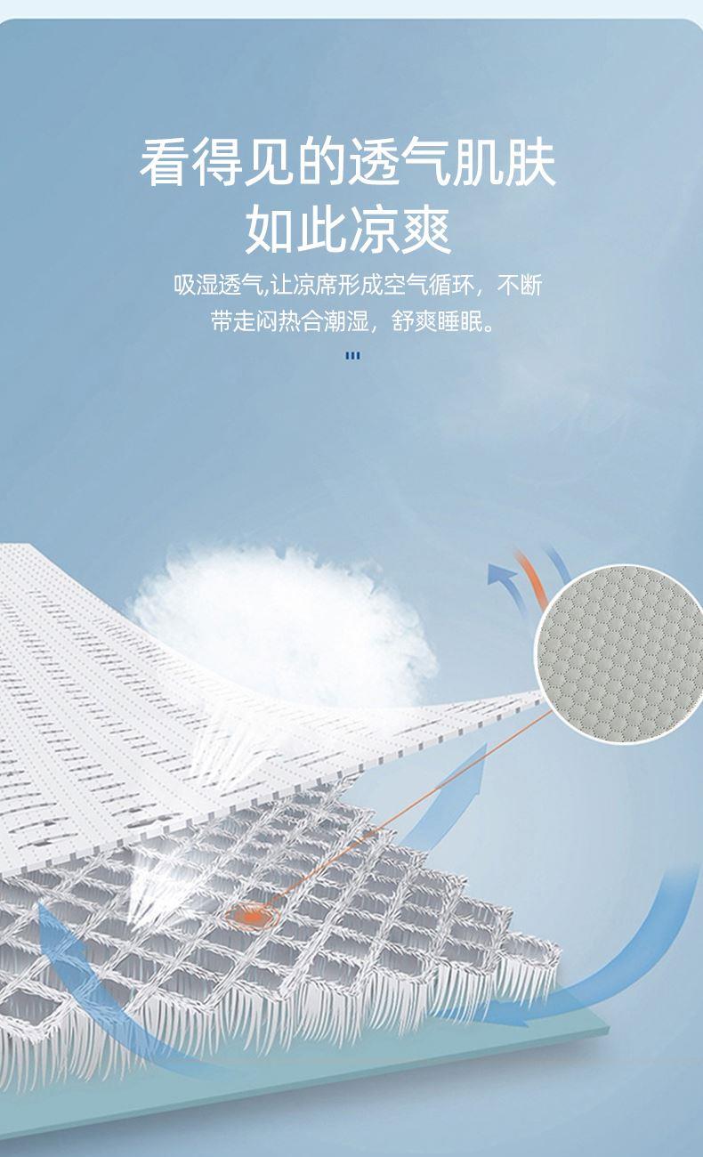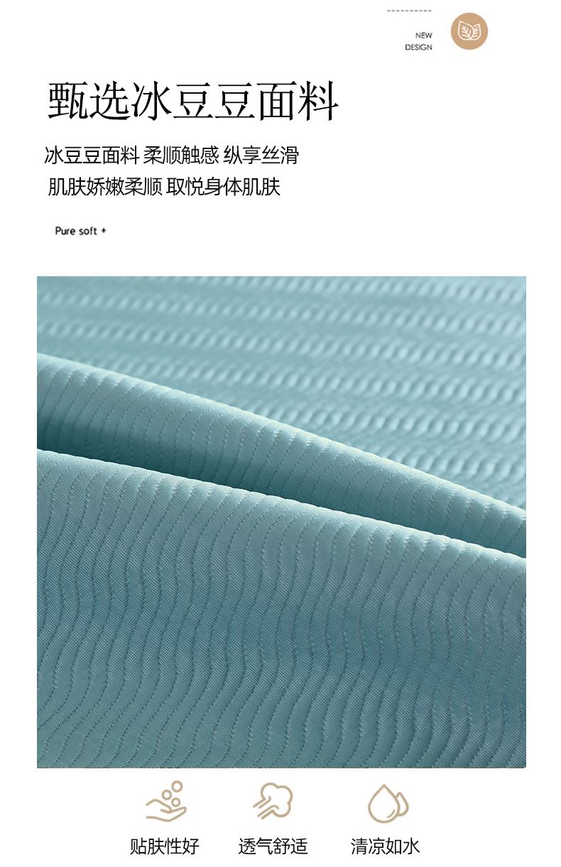 规格:180*200cm 枕套:48*74cm*2 面料:冰豆豆 复合料:无纺布 执行标准:Q/TDY 01-2016 安全类别:GB18401-2010 B类 1.严选豆豆按摩颗粒,微微凸起,QQ弹,让身体和席面预留更多,自由呼吸的空间 并且软到措手不及。 2.黑科技凉感丝降温纤维、清凉透气,体感降温,杜绝出汗,无惧机洗,高密织,水洗不易变形。