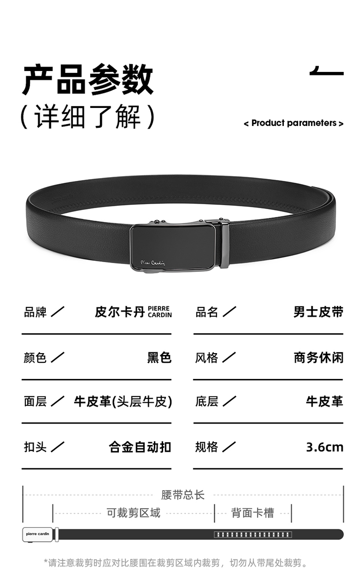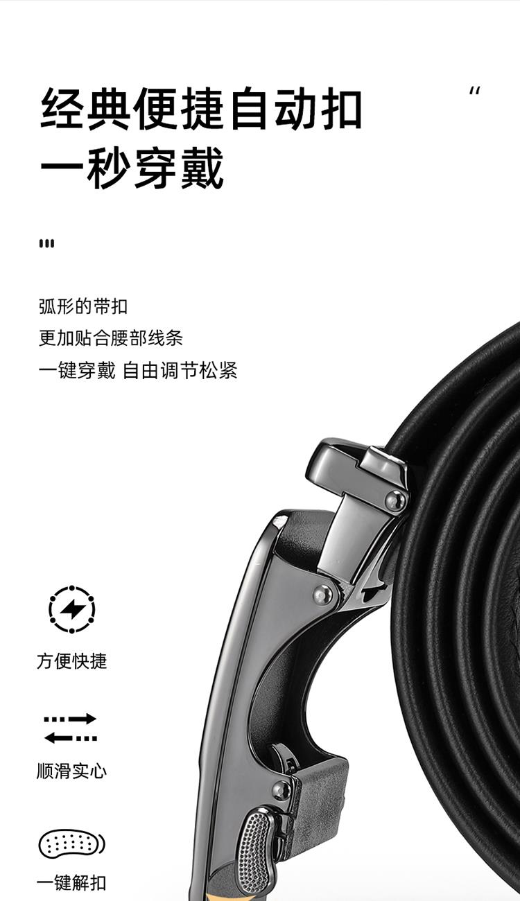货号:W42866611-5A (不同尺码不同货号) 颜色:黑色 款式:男式自动扣皮带 规格:宽36mm 面料:牛剖层皮革 里料:牛剖层皮革 扣头:合金