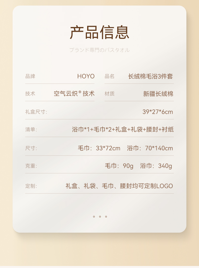 HOYO/3503臻品长绒棉毛浴3件套礼盒-浅咖(单位:盒)