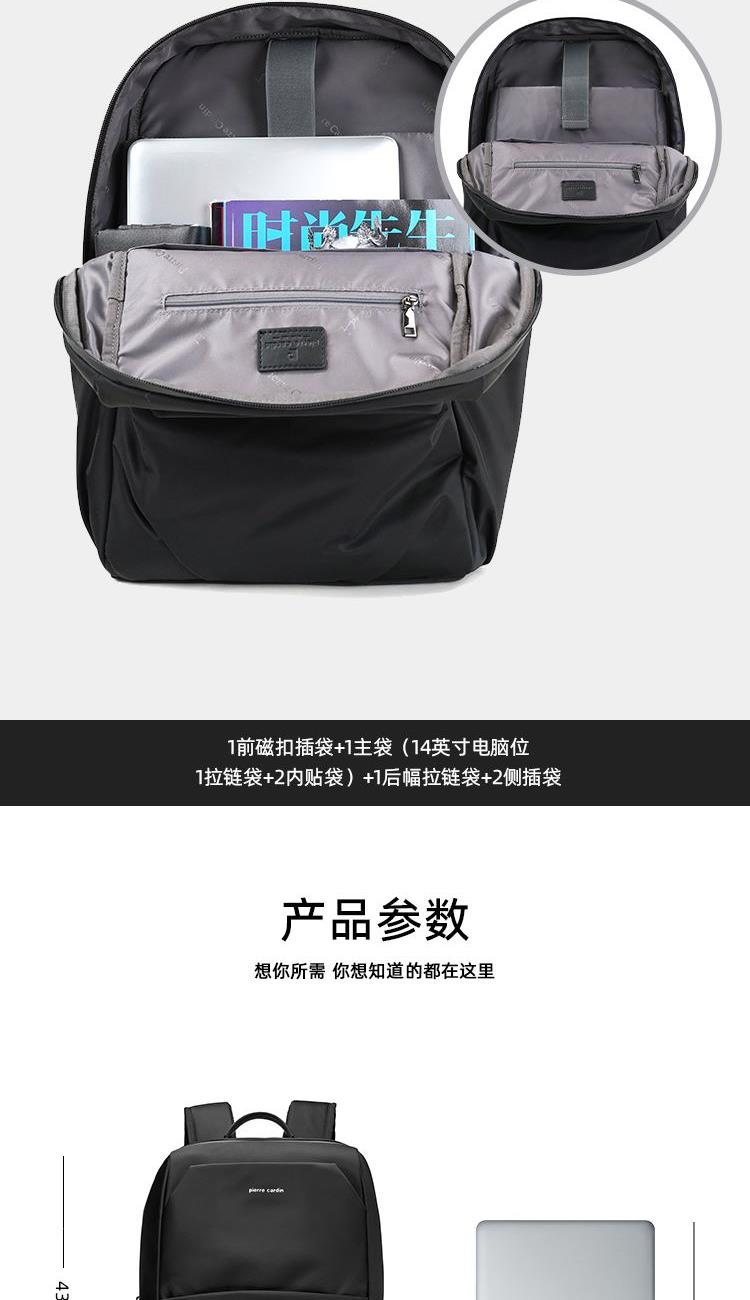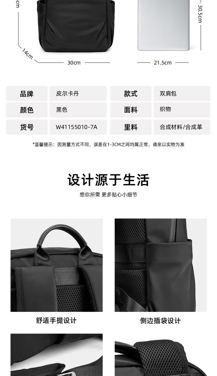 货号:W41155010-7A 颜色:黑色 款式:男式双肩包 规格:300*140*430mm 面料:织物 里料:合成材料/合成革