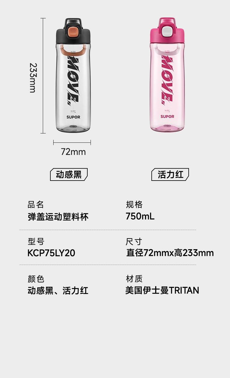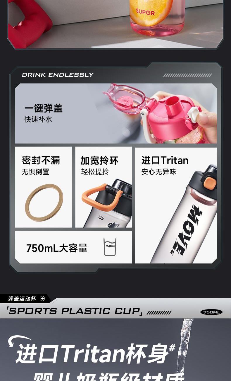 苏泊尔弹盖运动塑料杯750ML