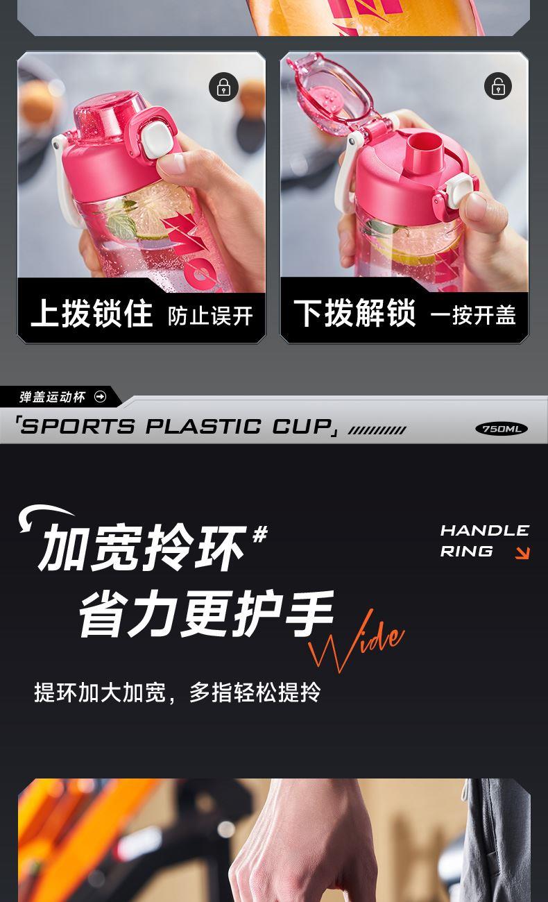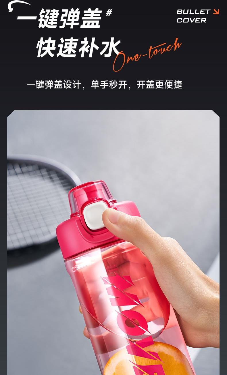 容量:350ml 材质:Tritan 卖点: 1.一键弹开 3.Tritan材质 不含BPA 耐热-20~100℃ 4.750mL大容量:满足日常运动需求